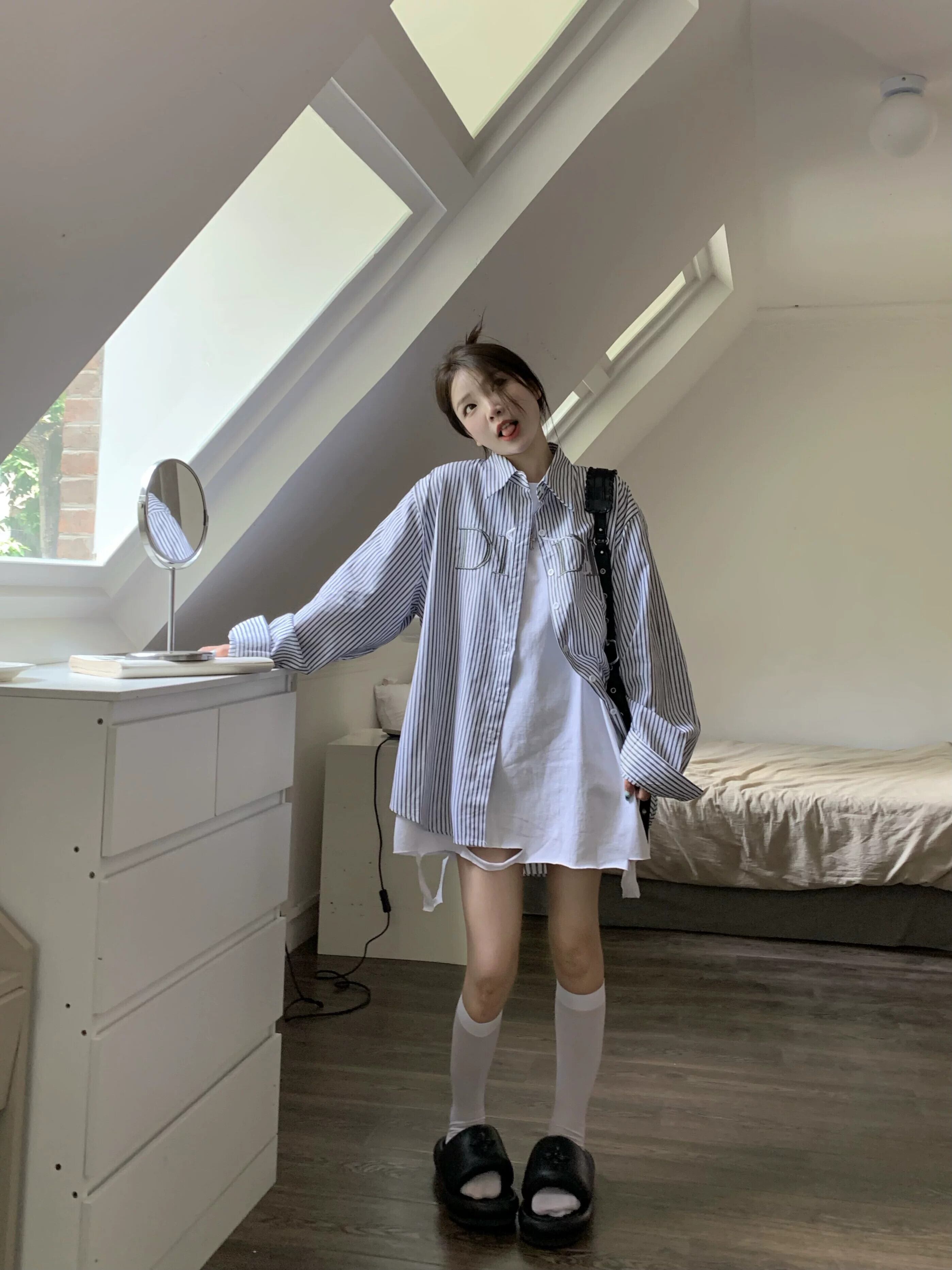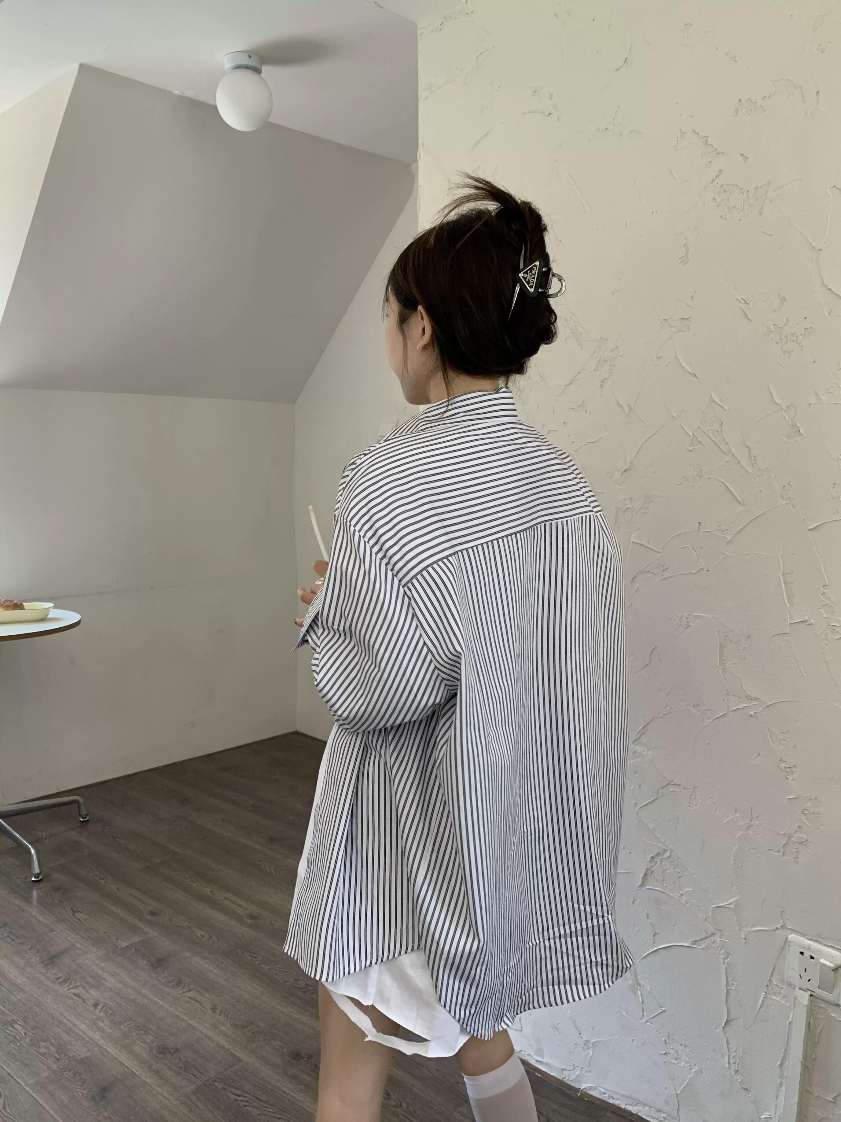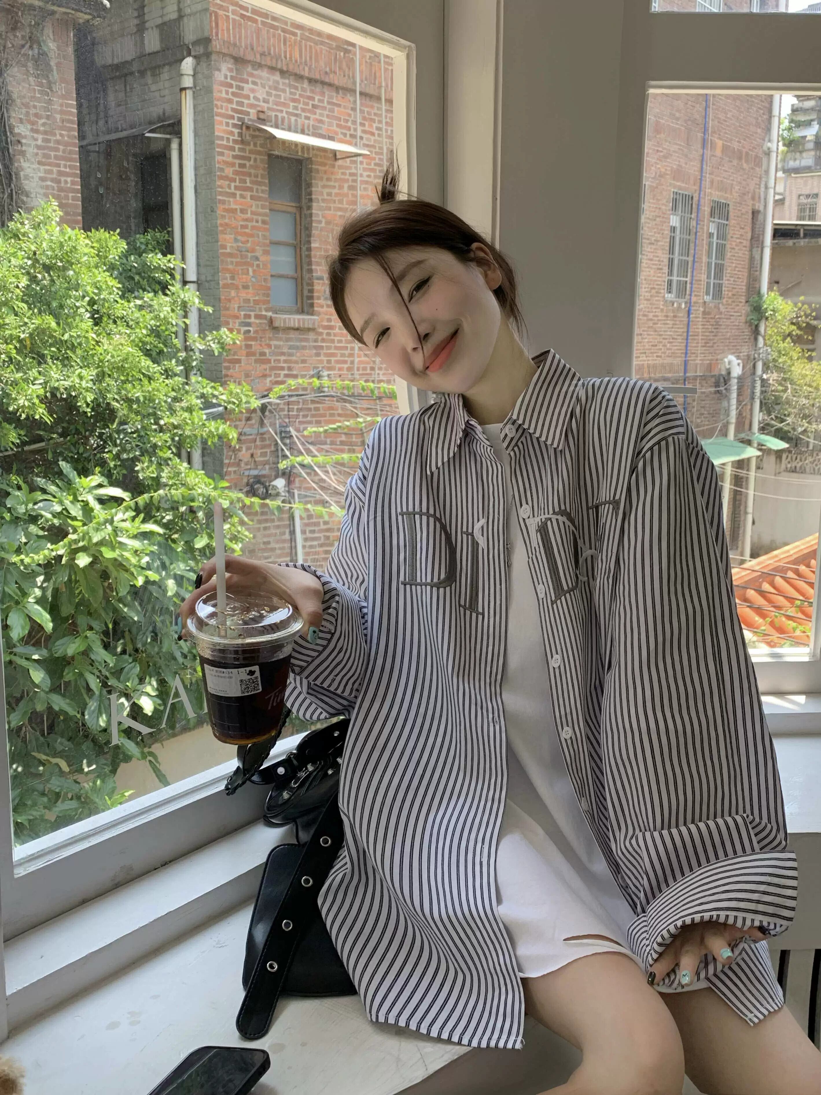 ストライプシャツジャケットレディースデザインニッチスタッキングシャツ2023初秋の新作ボーイフレンドスタイル長袖トップ ロング オータム 秋物 8571675613884872