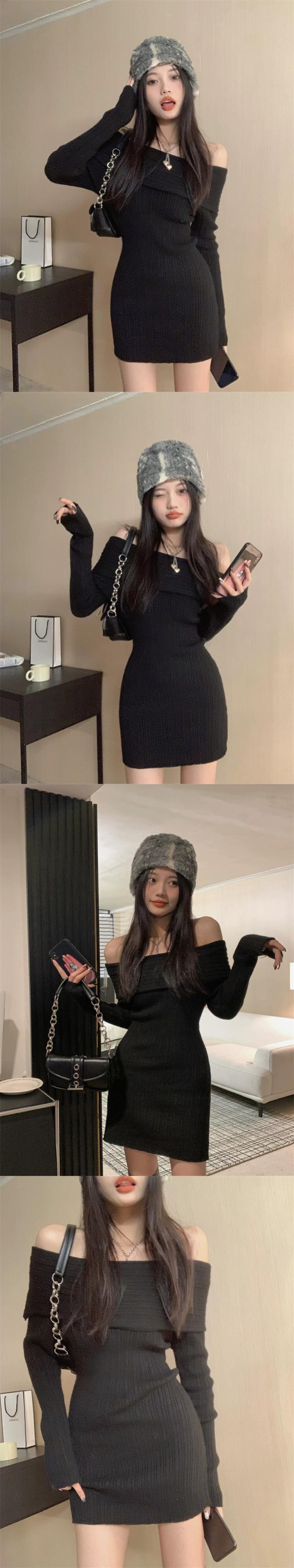 紫色のワンショルダーニットボトムドレス女性の秋の2023新しい純粋な欲望スリム気質スカート オータム 秋物 ピュア パープル 8571696455852375