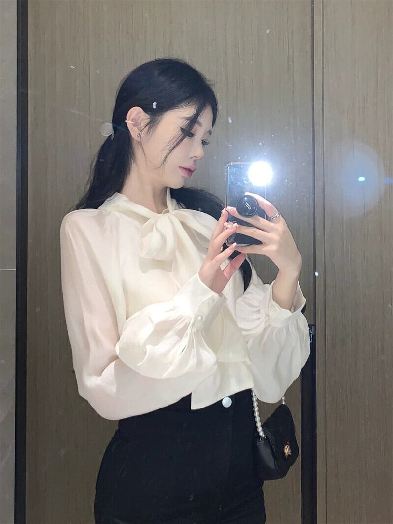 ニッチなデザインと先進的な2023初秋の新しいスタイルの長袖シャツを備えたフレンチシックで美しいトップス女性 ロング オータム 秋物 857169744542838