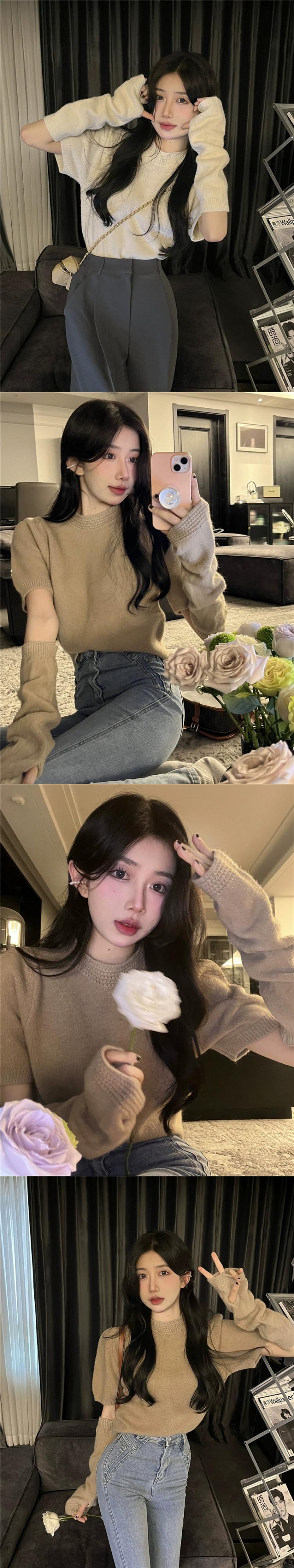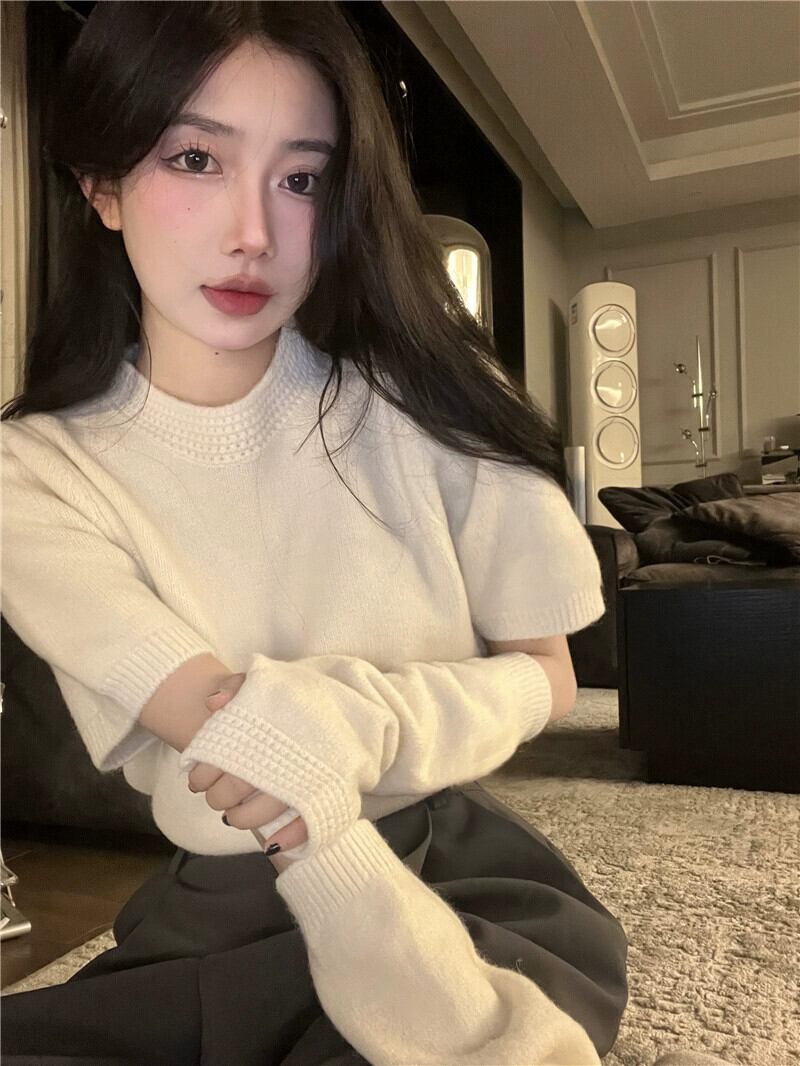 女性のスプリットスリーブセーターデザインニッチ秋冬2023新しいスタイルのユニークでユニークな美しいセータートップ オータム 秋物 ウィンター 冬物 857169319416877