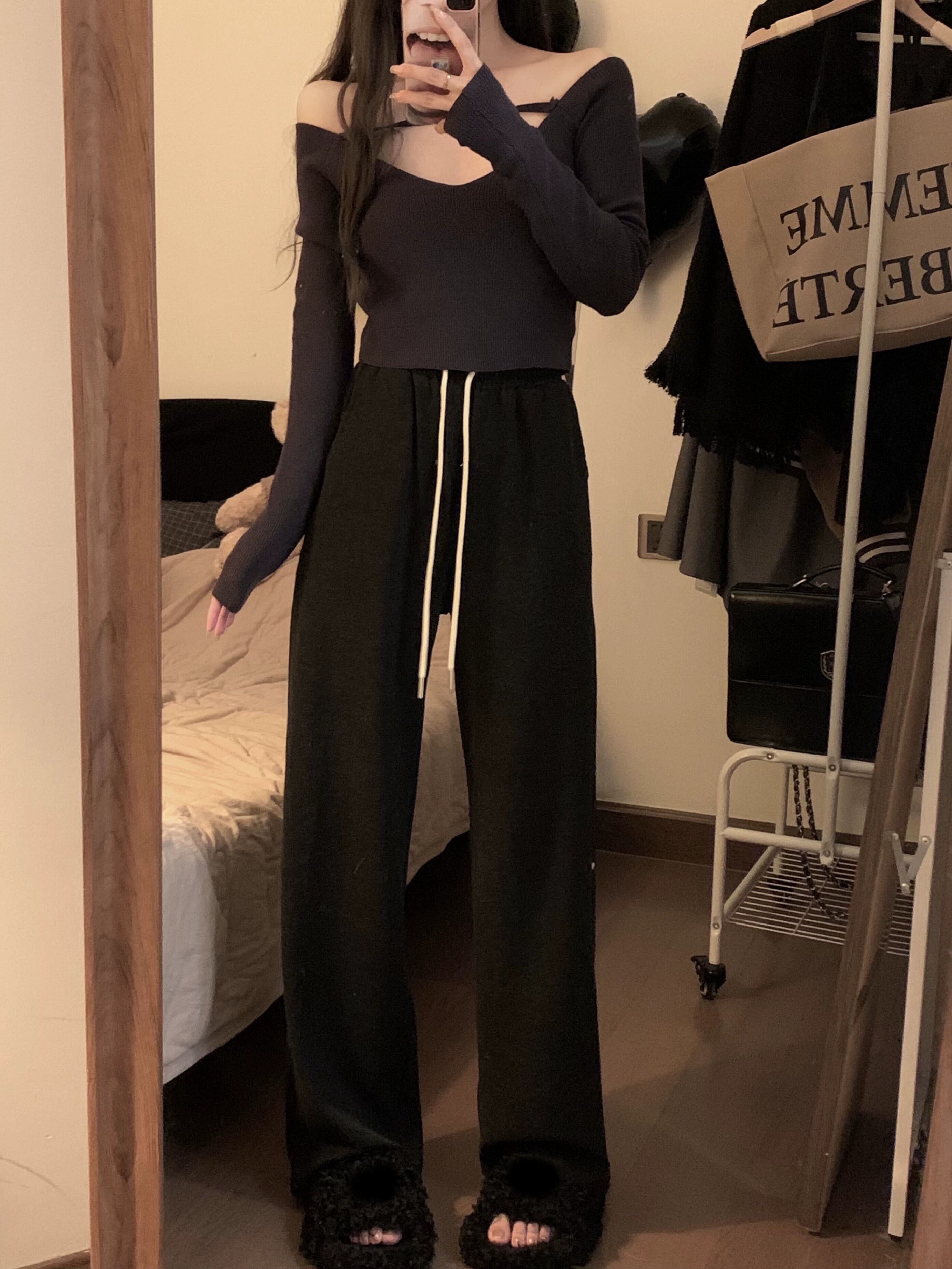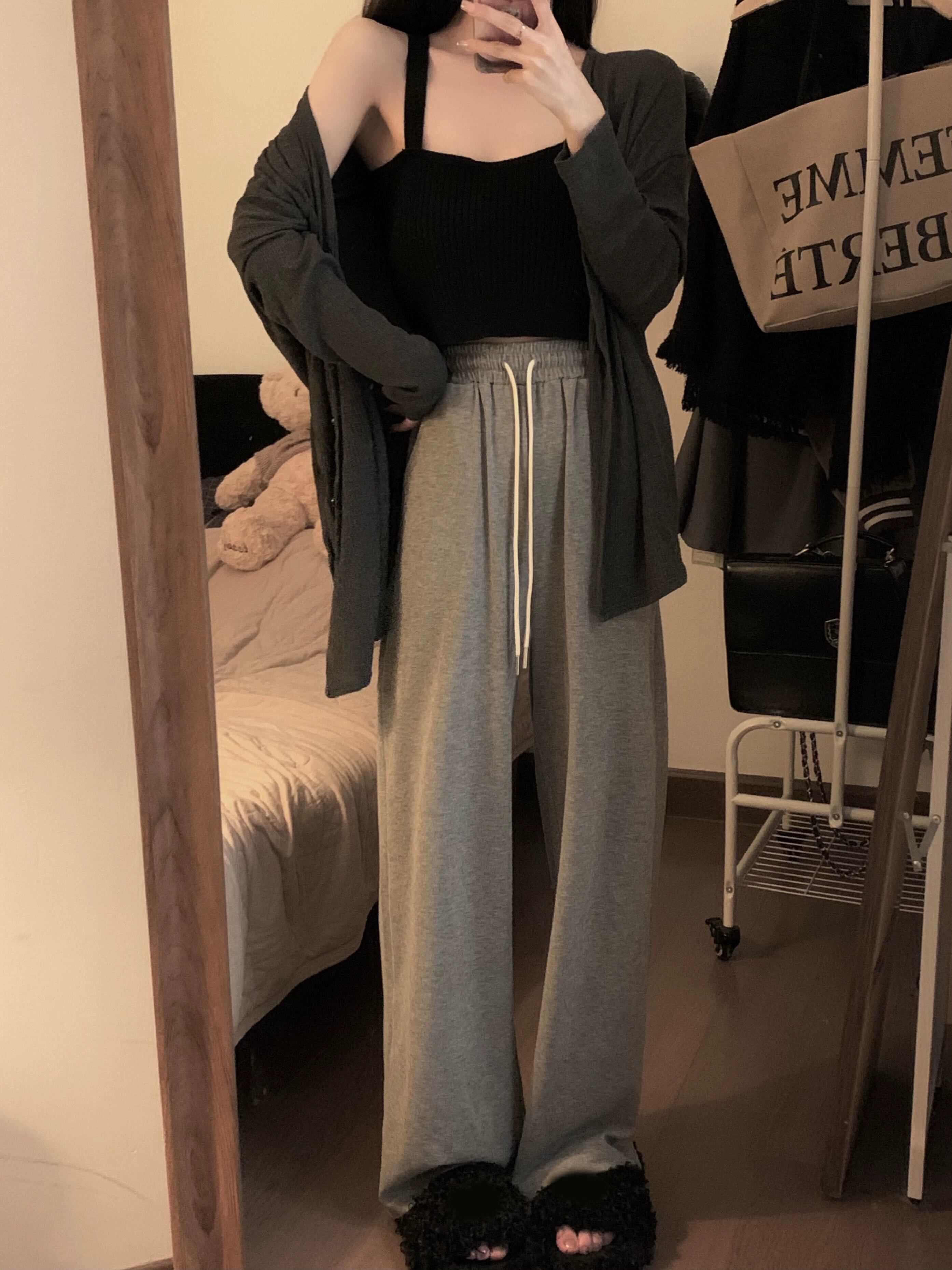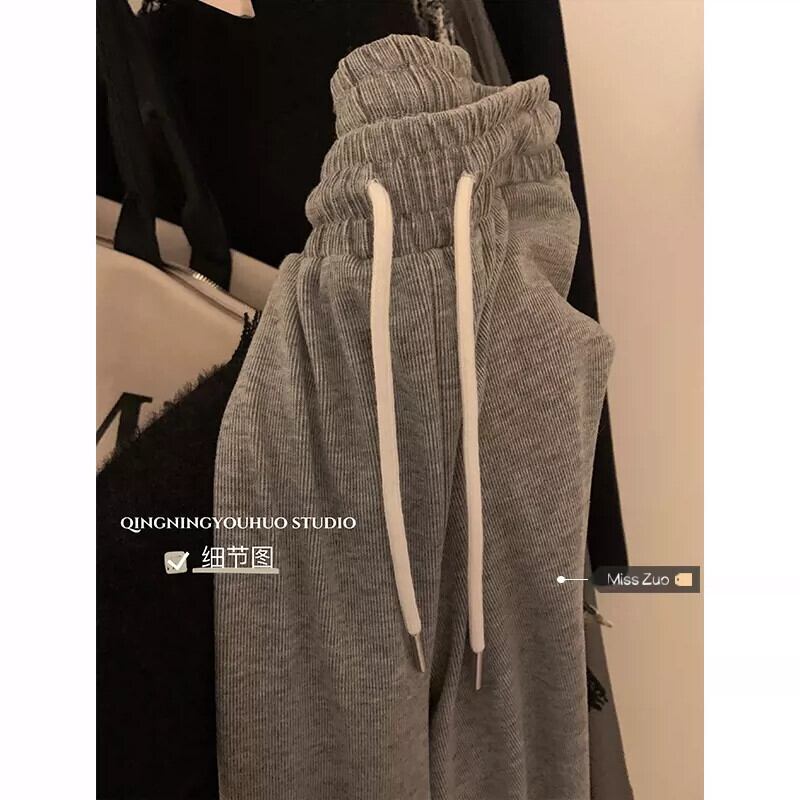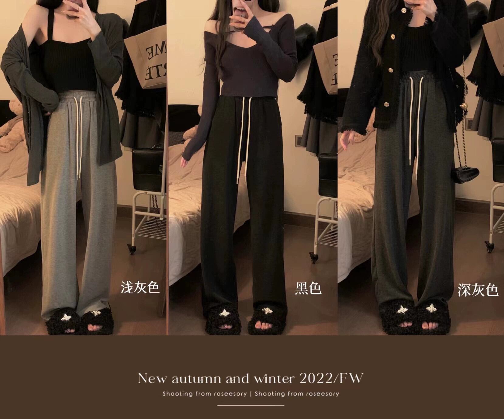 グレーカジュアルパンツ女性の秋と冬 2023 新しいハイウエストドレープスムーズな弾性ウエストプラスベルベット肥厚ストレートワイドレッグパンツ ハイウェスト エラスティック 伸縮 オータム 秋物 ウィンター 冬物 ワイドパンツ 8571666167744288