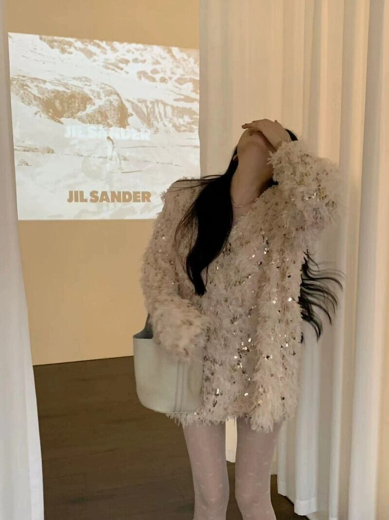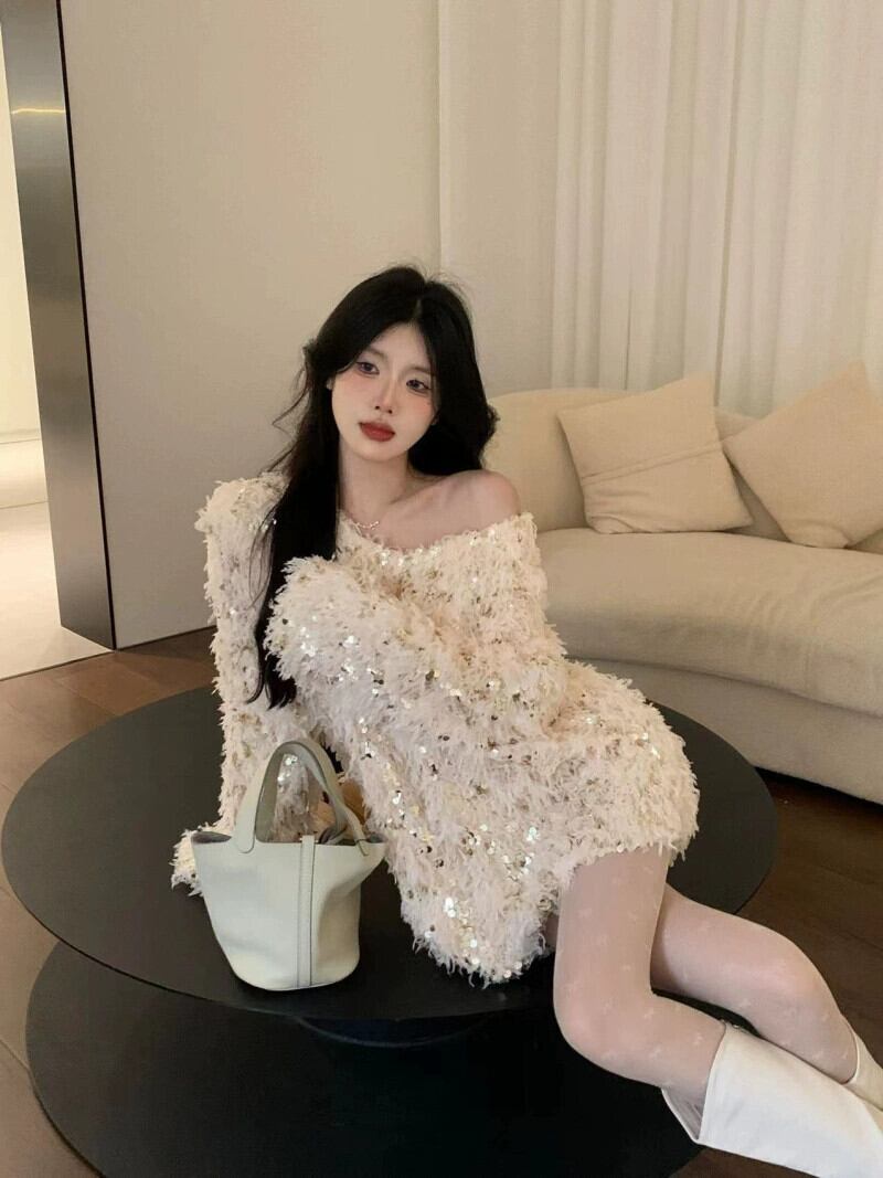 スパンコールセーターレディース、ニッチデザイン、ハイエンドで超見栄えの良い、2023秋の新しいスタイル、怠惰なスタイル、美しいVネックトップ オータム 秋物 8571645465453902