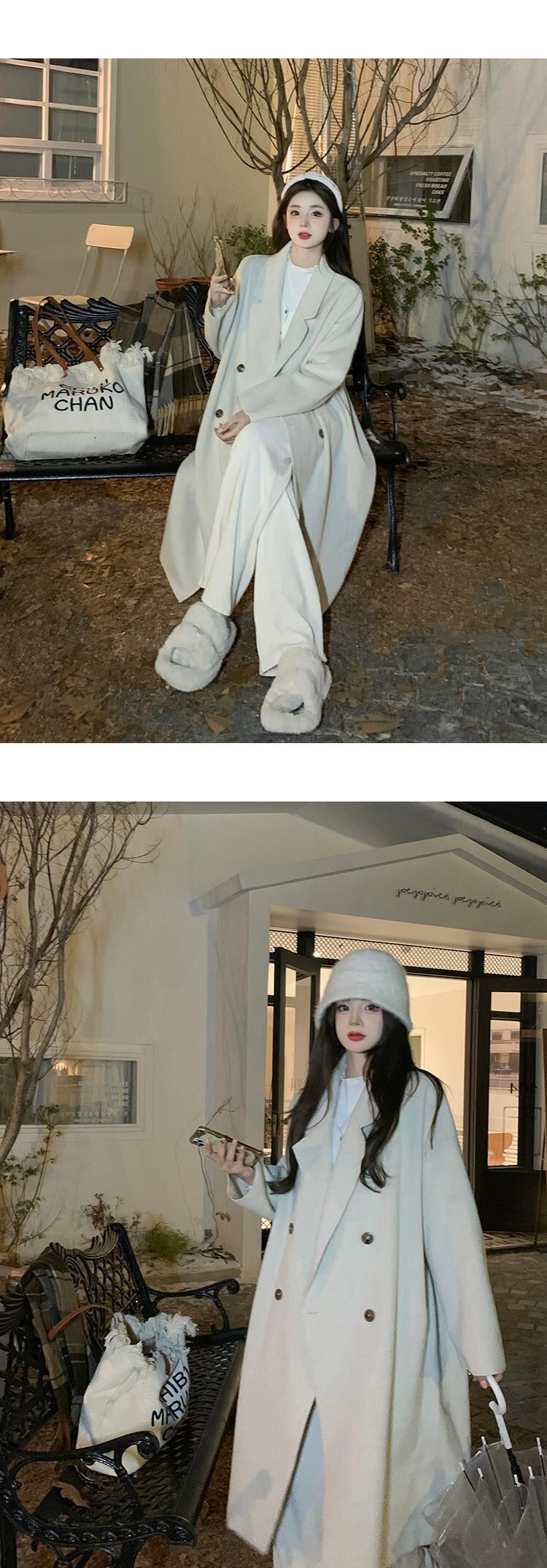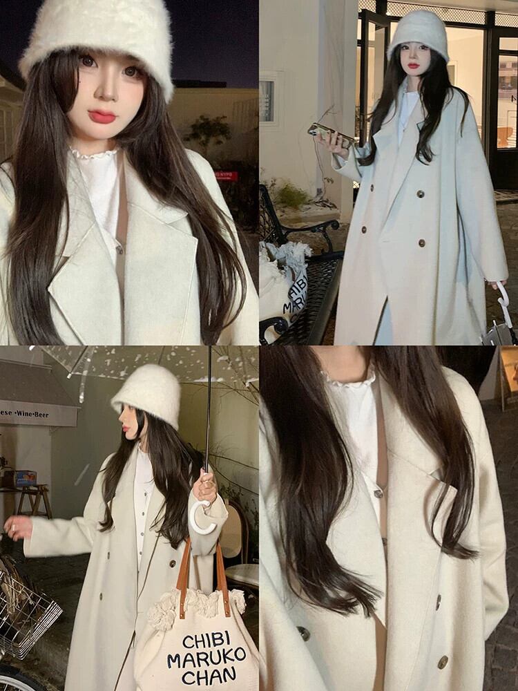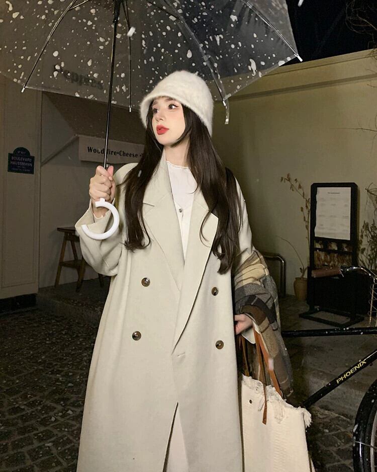 オフホワイトのミドル丈ウールコートの女性の秋冬2023新しいハイエンドの小さなスタイルのウールコート オータム 秋物 ウィンター 冬物 8571693562822835