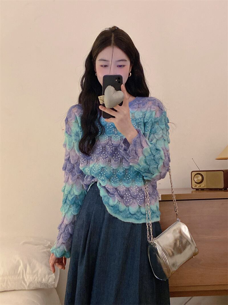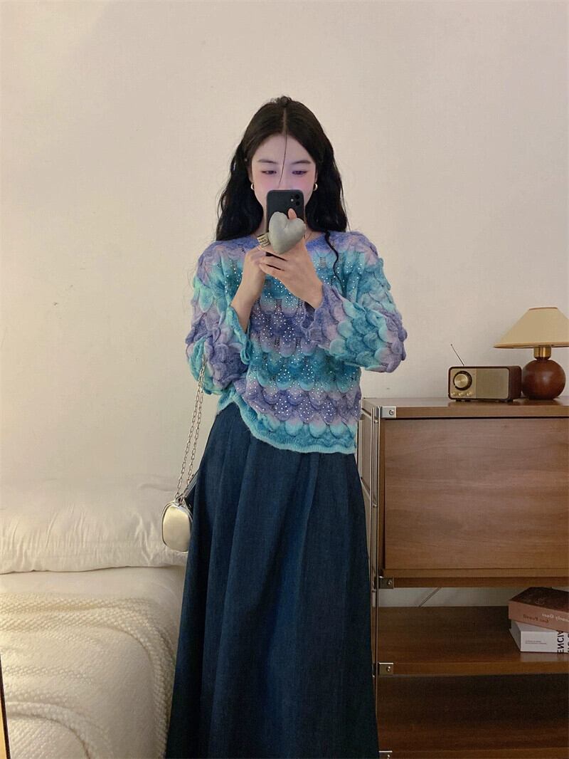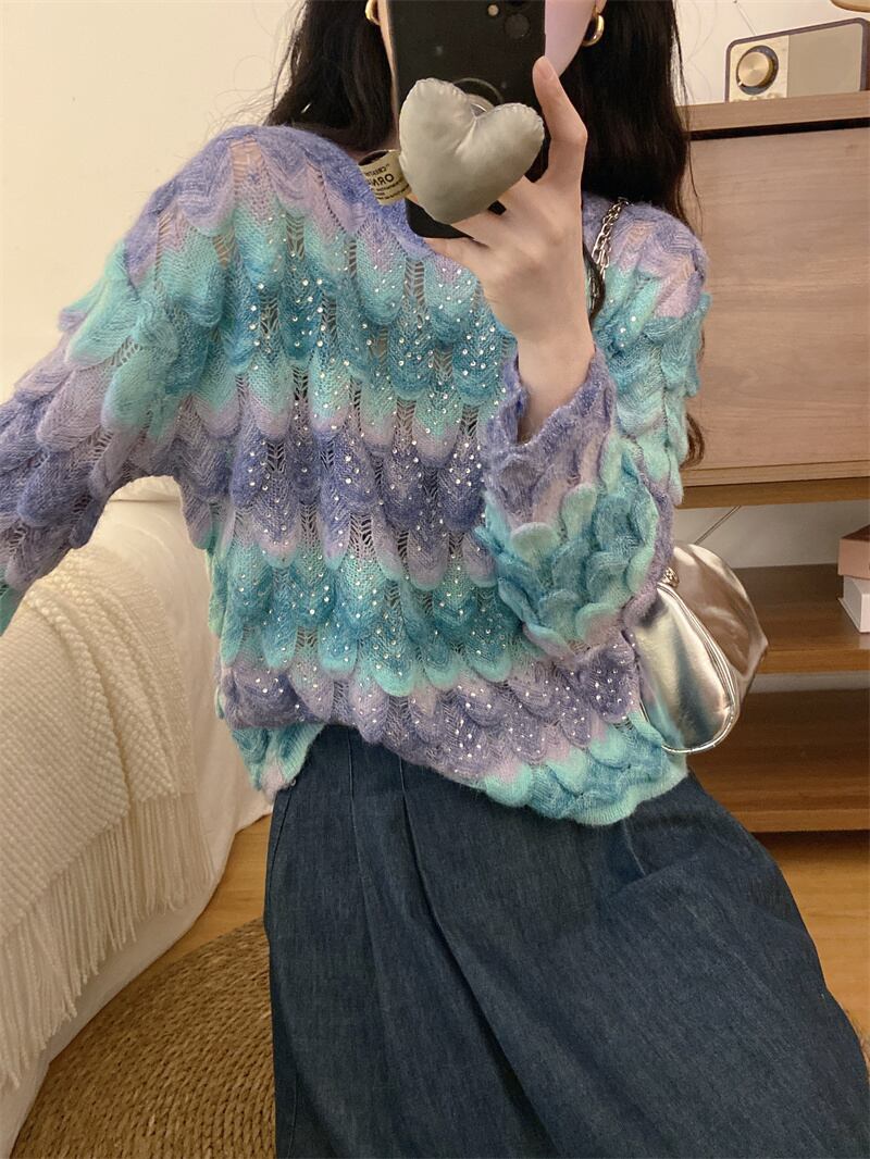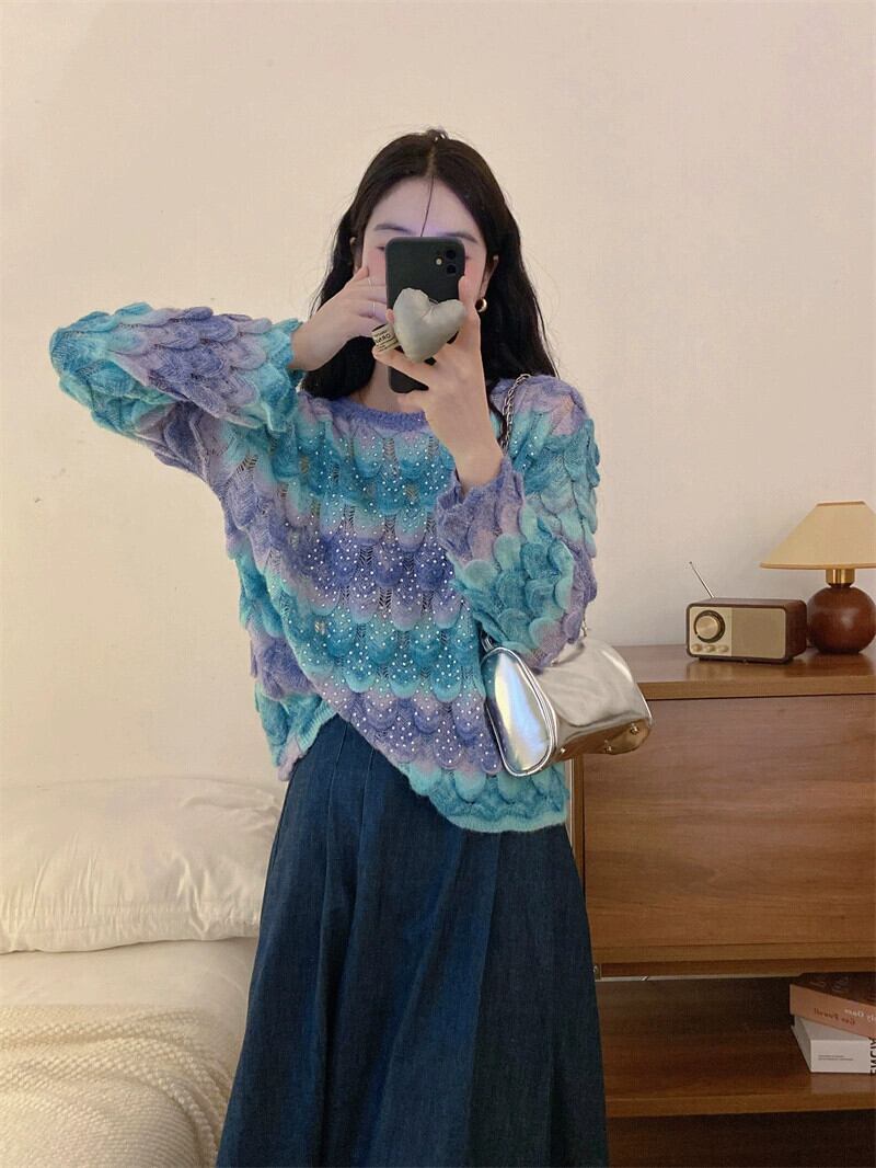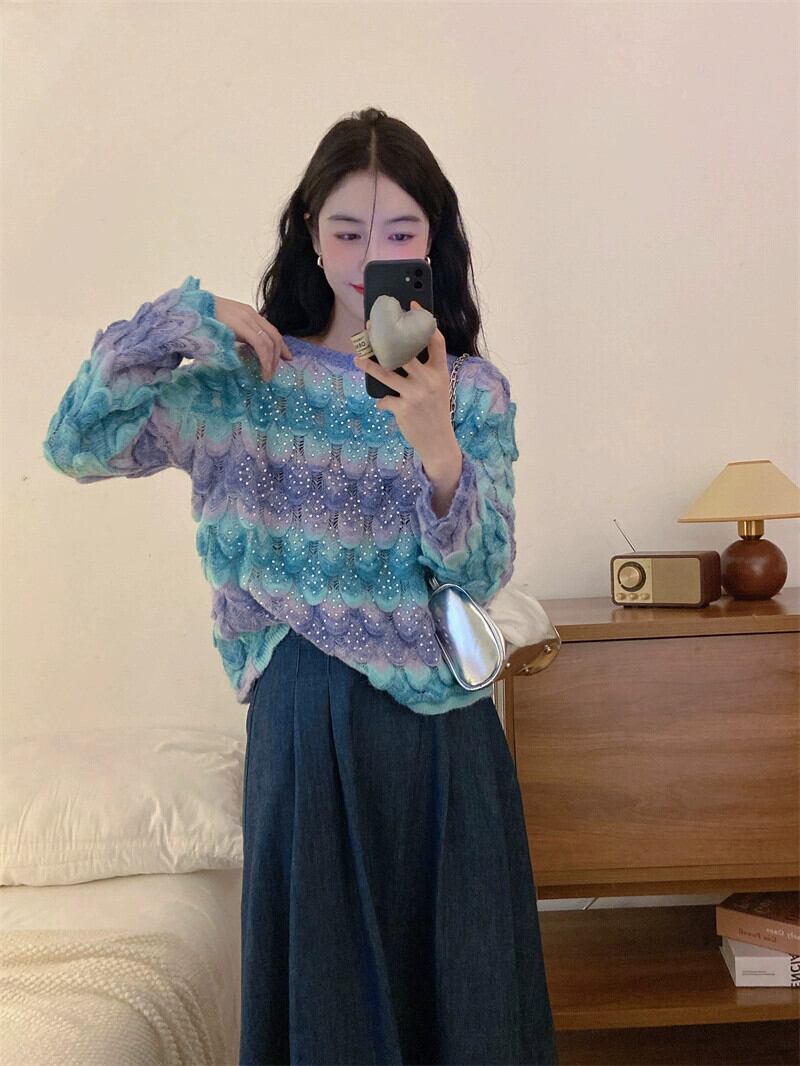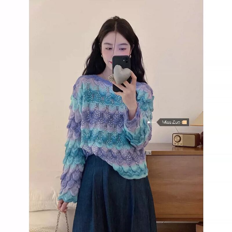 グラデーションカラープルオーバー婦人服 2023 秋の新フレンチレトロハイエンド超素敵な長袖セーター ロング オータム 秋物 8571682431232261