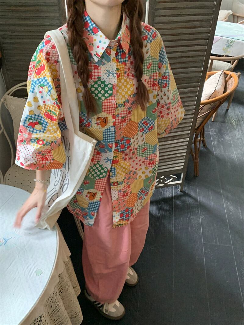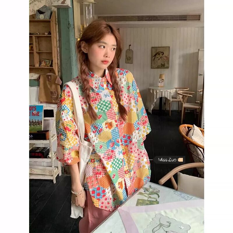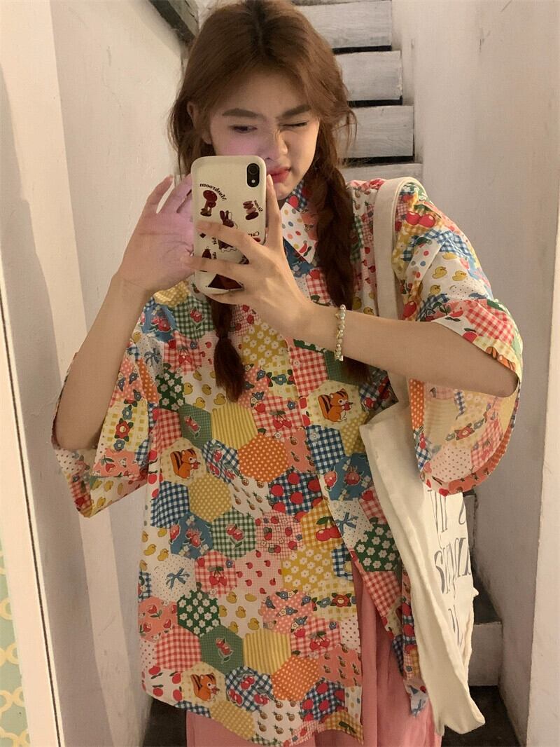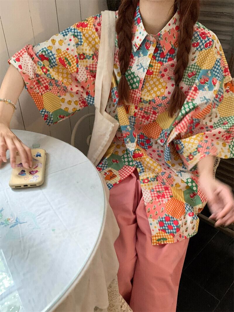 花柄シャツの女性の夏のデザインニッチ半袖シャツ 2023 新しい香港スタイルのレトロな甘い老化トップ 大人ガーリー スウィート キュート カジュアル サマー 夏物 8571669576817304