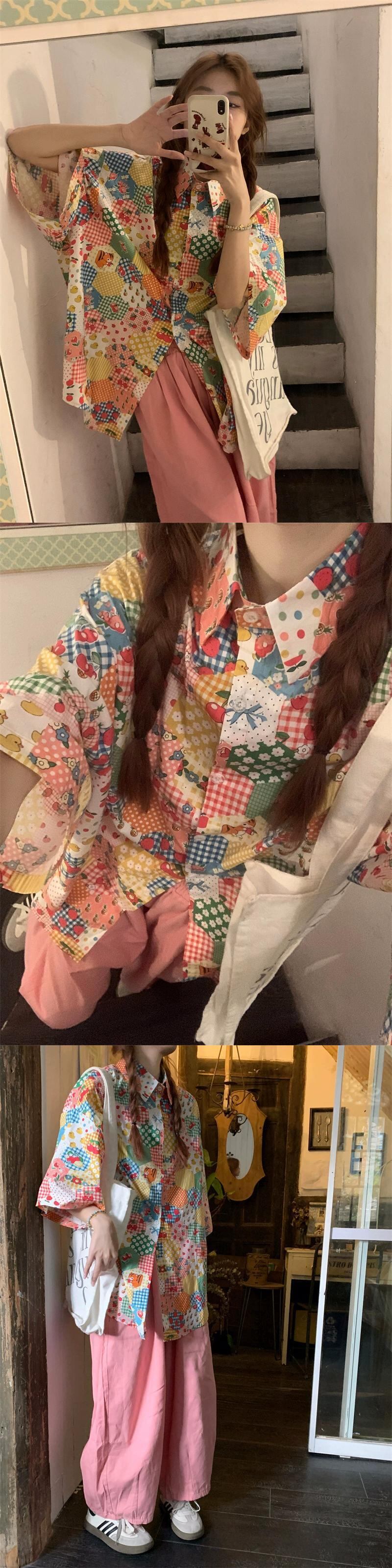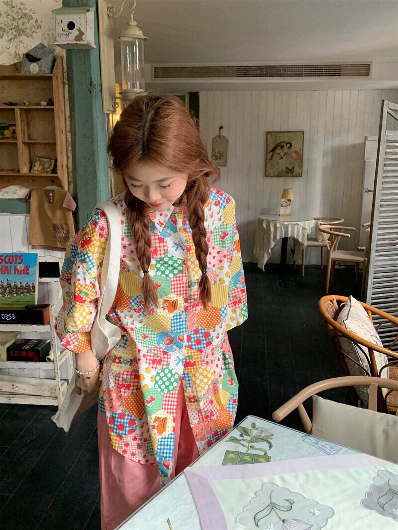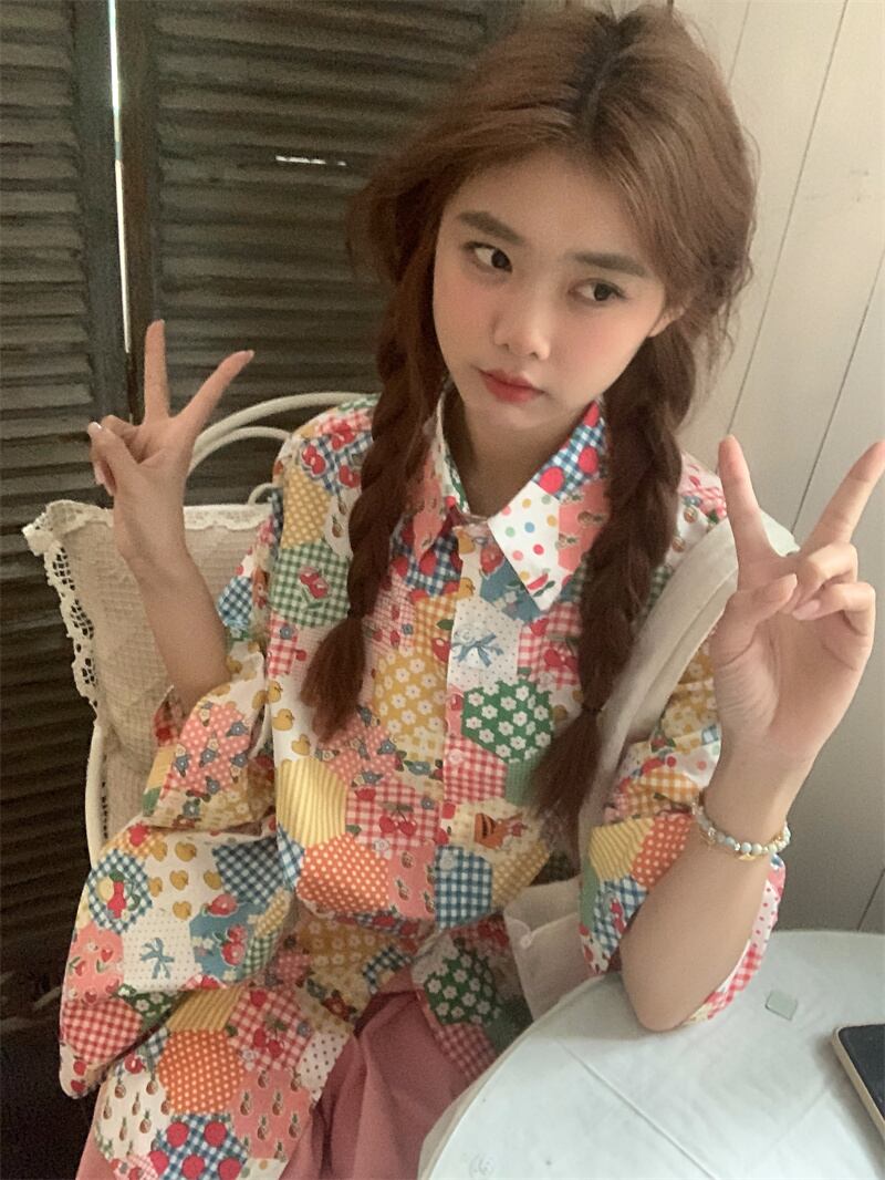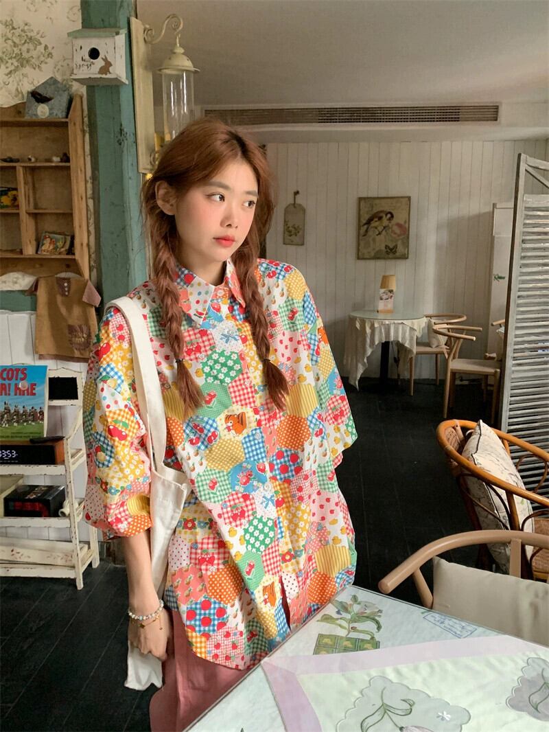 花柄シャツの女性の夏のデザインニッチ半袖シャツ 2023 新しい香港スタイルのレトロな甘い老化トップ 大人ガーリー スウィート キュート カジュアル サマー 夏物 8571669576817304