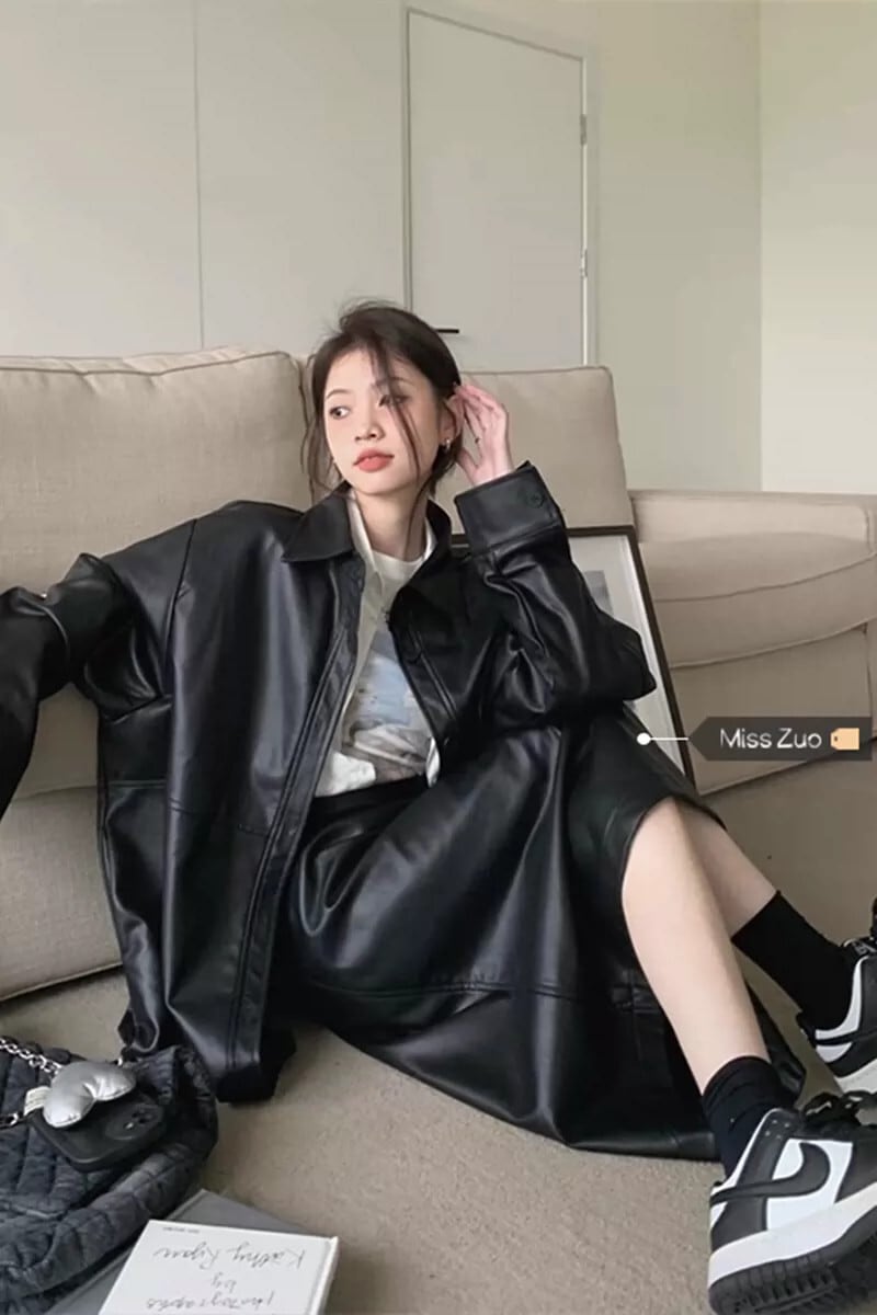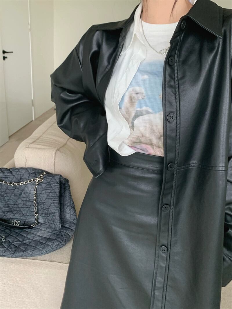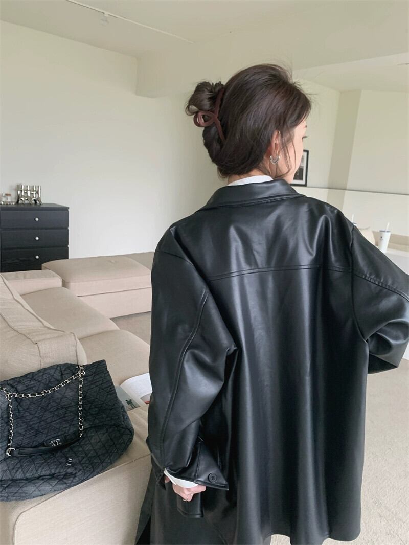 ブラックレザージャケットの女性の香港スタイルオートバイ服 2023 秋の新ハイエンドアメリカンスタイルのハンサムな PU レザージャケット オータム 秋物 8571652417190276