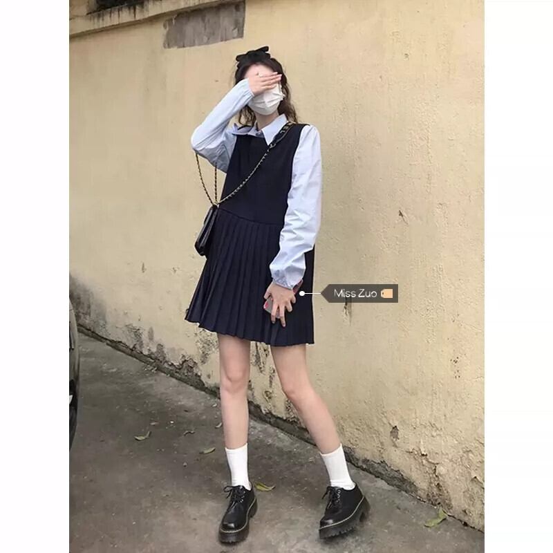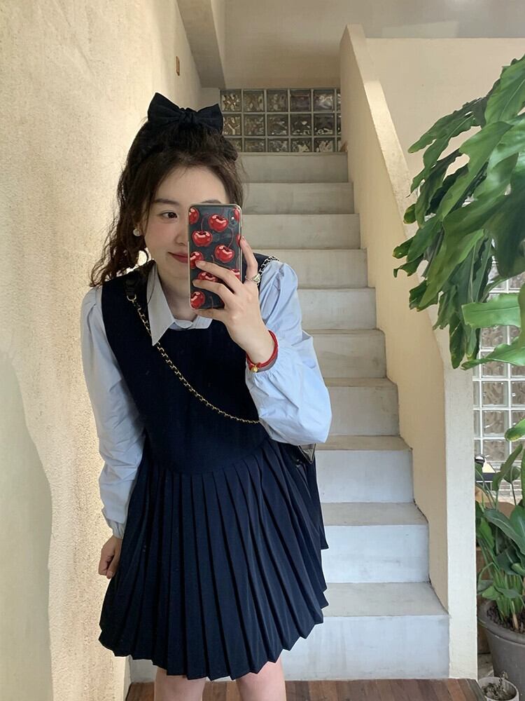 ノースリーブベストドレスレディース 2023 秋の新プレッピースタイル小さくてスタイリッシュな年齢を軽減するプリーツショートスカート オータム 秋物 8571632643662146