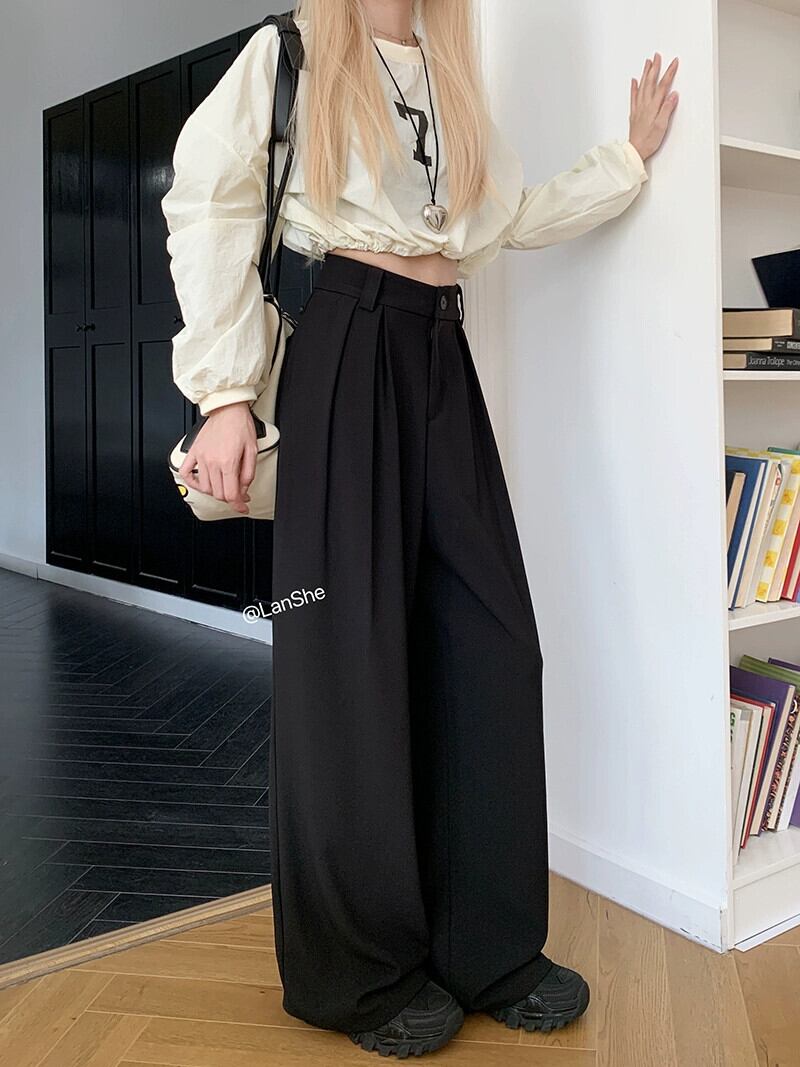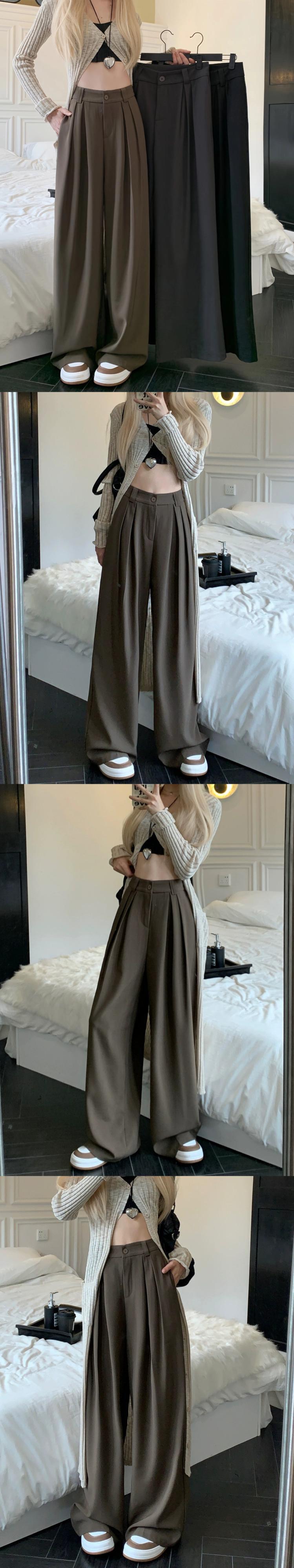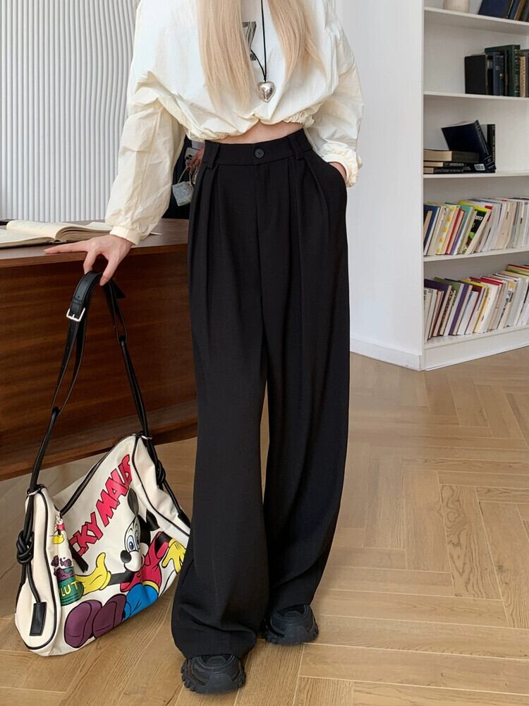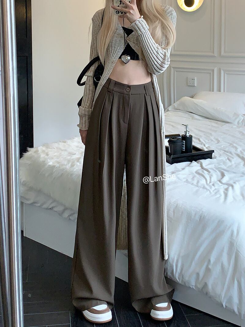 コーヒー色のスーツパンツの女性、高級ドレープワイドレッグパンツ、2023秋の新しいスタイル、ハイウエスト、ルーズ、カジュアル、モップパンツ。 レッド オータム 秋物 8571611125741610