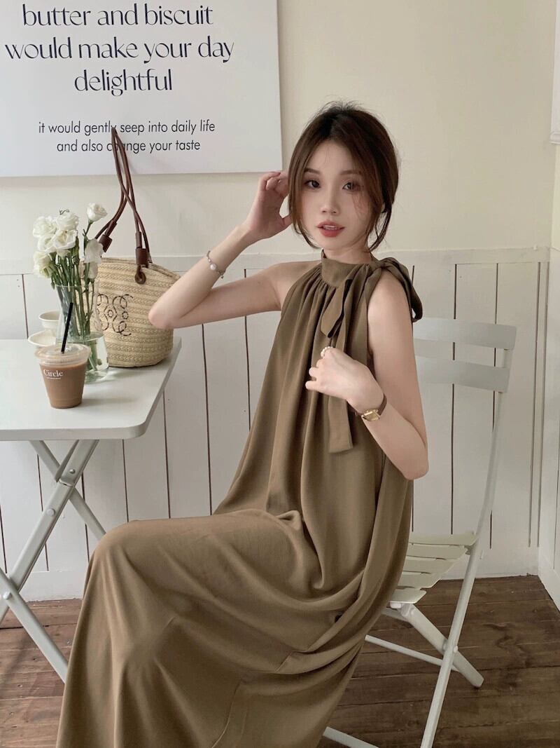 黒のホルターネックドレスの女性の夏 2023 新しいドレープフレンチヘップバーンスタイルの海辺の休暇ロングスカート ブラック サマー 夏物 857163061972394