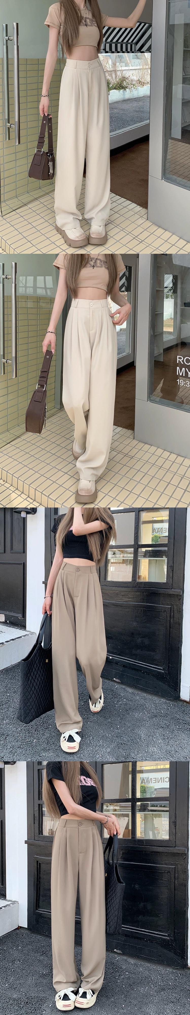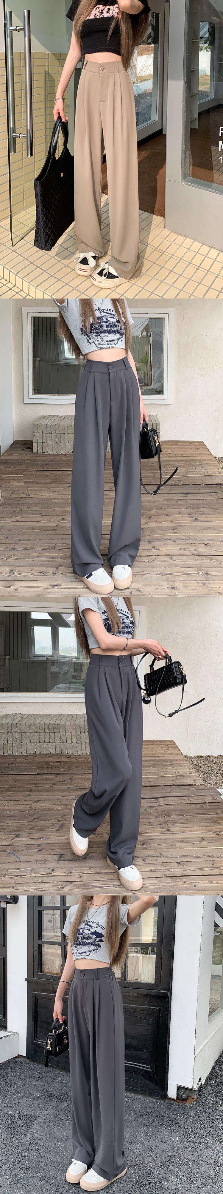 カーキスーツパンツ女性の夏のハイウエストドレープワークパンツ 2023 新しいハイエンドカジュアルフロアモップパンツ サマー 夏物 8571663160098643