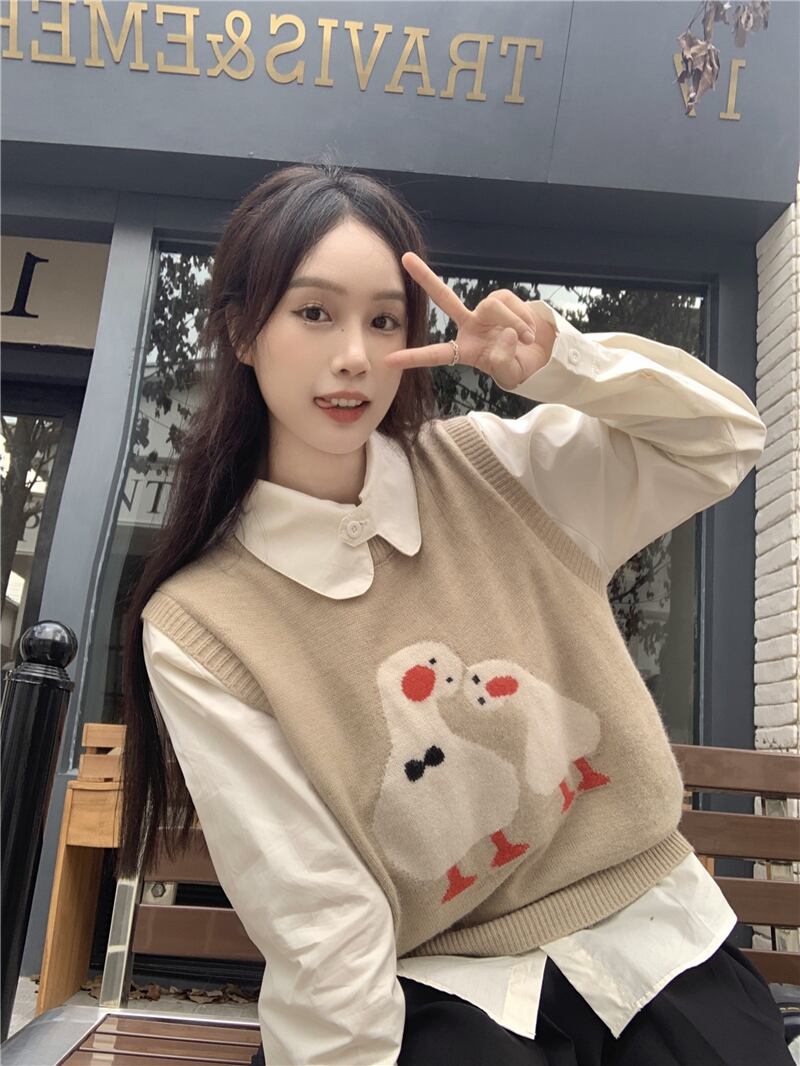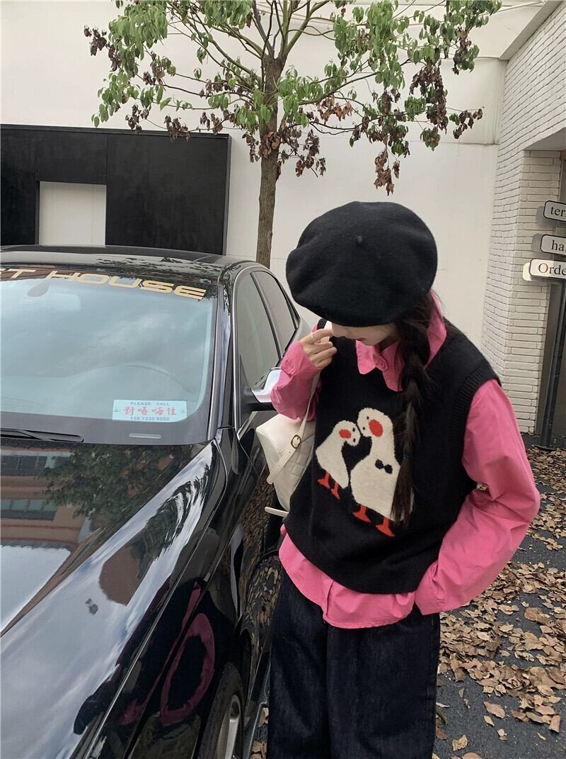 黒のニットベストの女性の秋のアウターノースリーブベスト 2023 新しい甘い年齢を減らすベスト ブラック 大人ガーリー スウィート キュート カジュアル オータム 秋物 8571624889967046