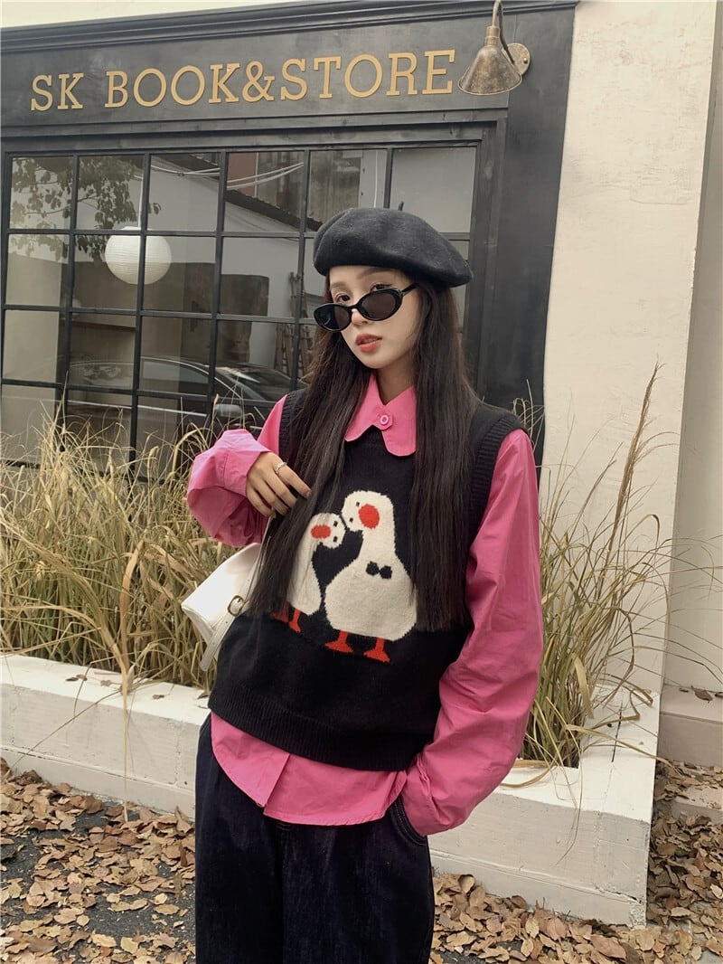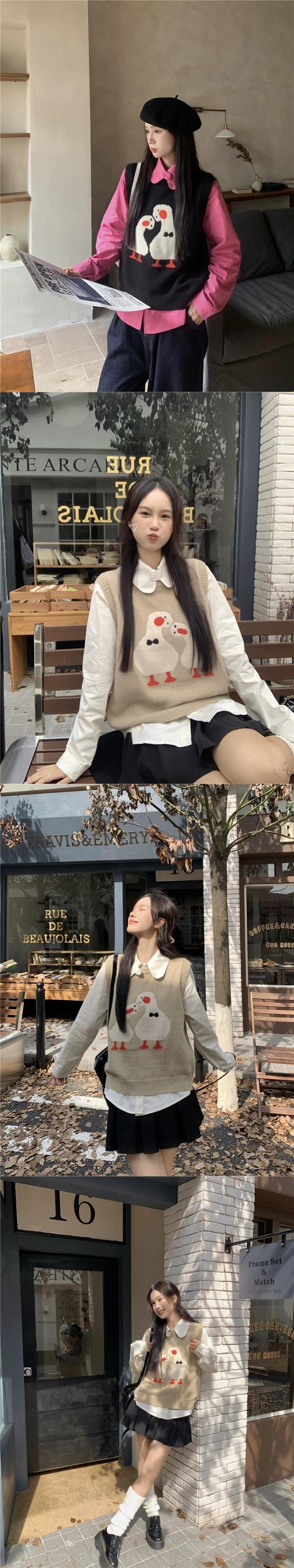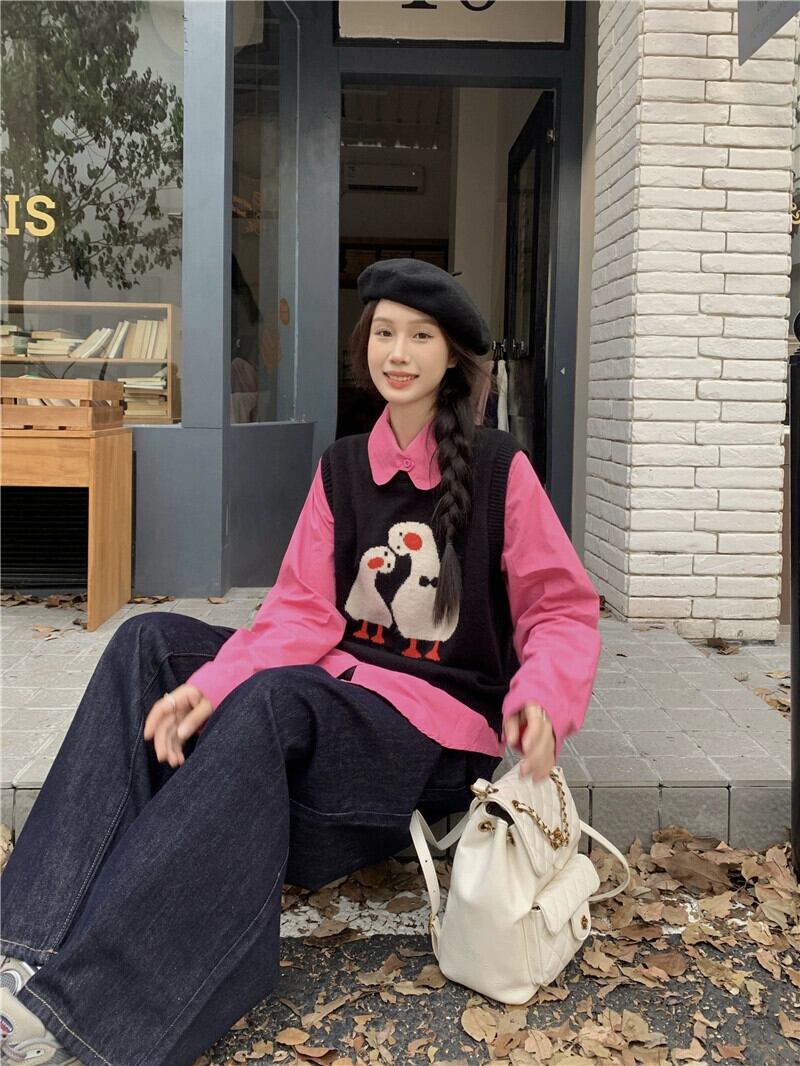色:バラのシャツ,アプリコットシャツ,黒のニットベスト,アプリコットニットベスト