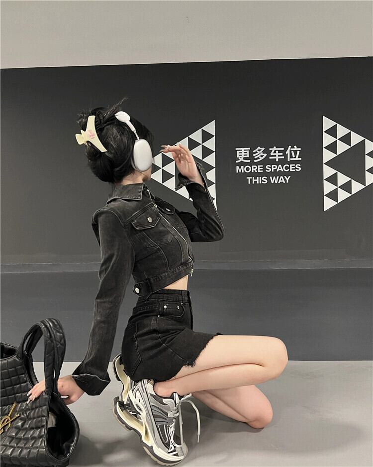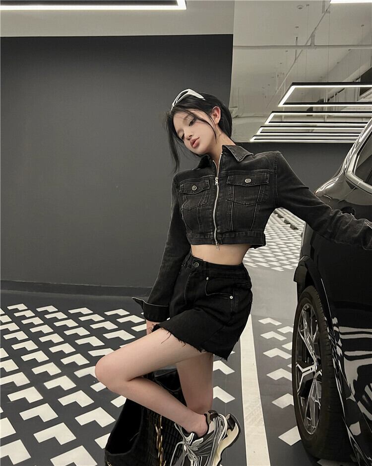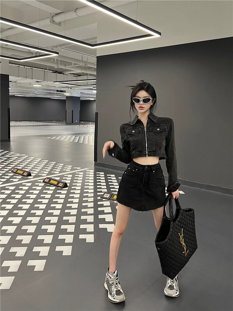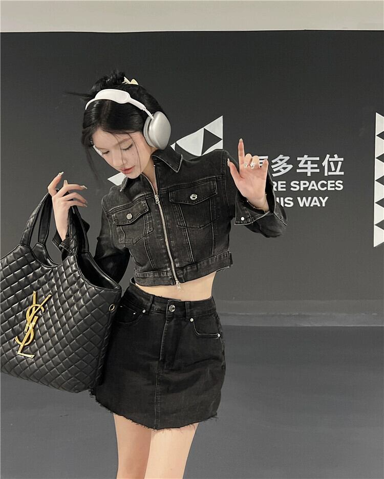 ダブルエンドジッパーデニムジャケットの女性 2023 秋の新アメリカンレトロ甘くてクールなショートトップ 大人ガーリー スウィート キュート カジュアル オータム 秋物 8571618650529673