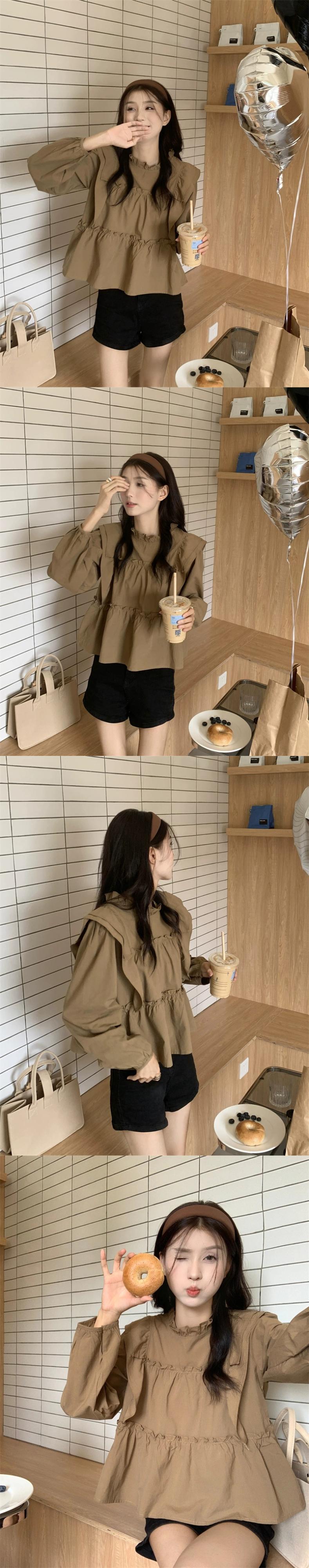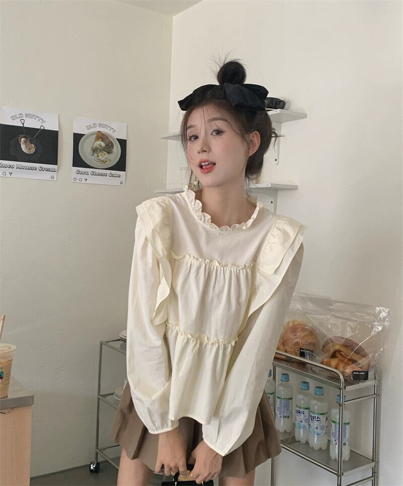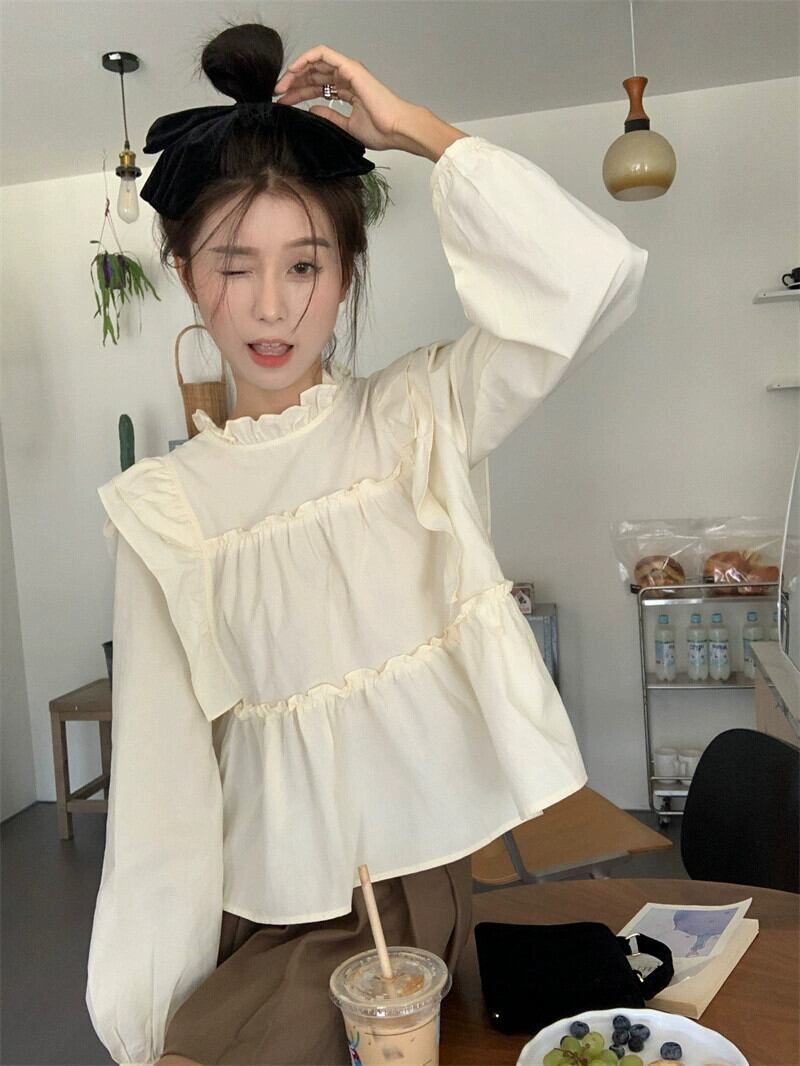 フリルベビードールトップスレディース2023初秋新作フレンチ甘く優しいスタイルカーキ長袖シャツ ロング 大人ガーリー スウィート キュート カジュアル オータム 秋物 8571618711585348