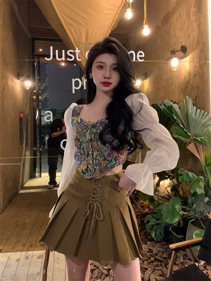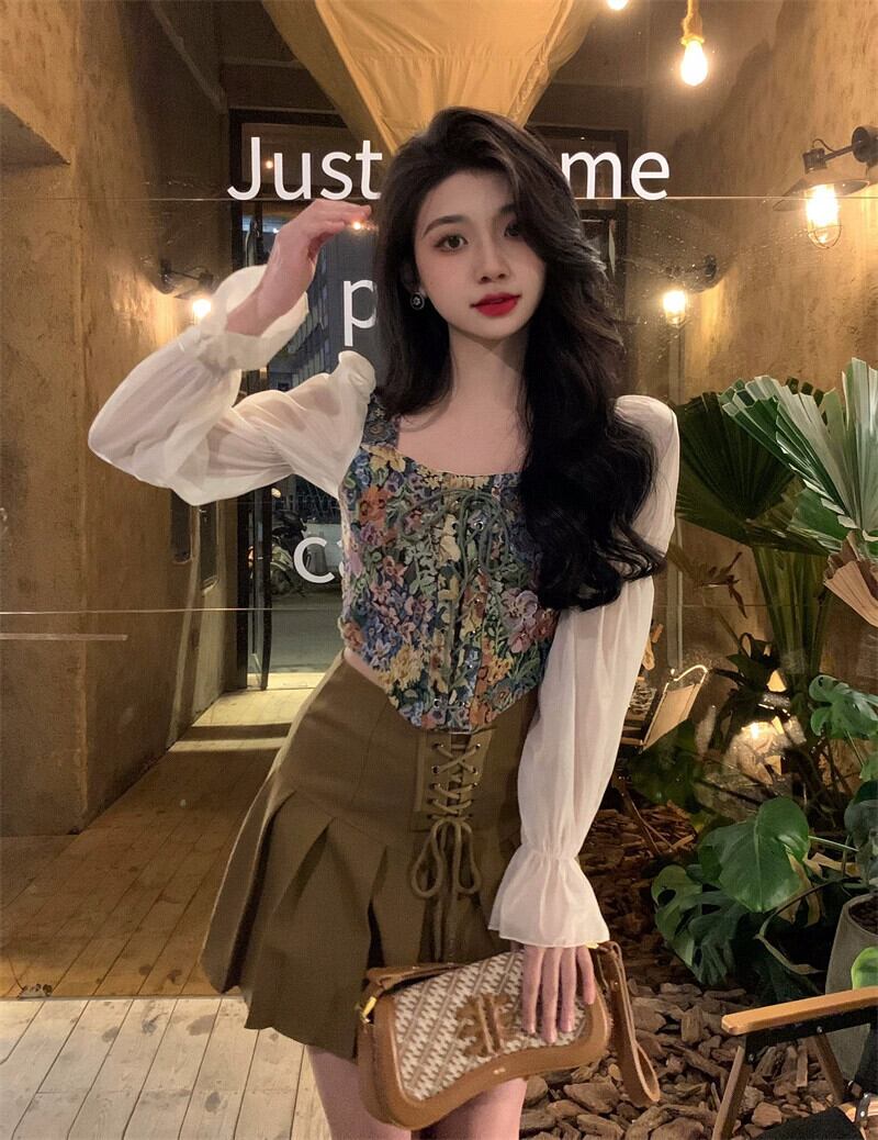 パフスリーブトップレディース2023秋新デザインニッチフレンチユニークな長袖ショートシャツ ロング オータム 秋物 8571616668435052