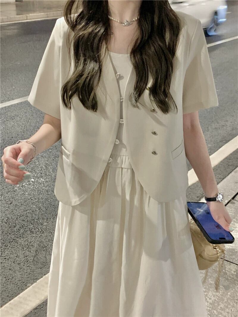 スリムサスペンダードレス女性 2023 夏の新しいスタイルの摩耗デザインニッチ小柄なスカート サマー 夏物 8571610215947638