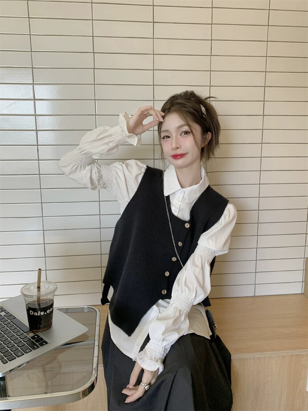 色:白のシャツ,黒のベスト,黒スカート,ブロガー募集オーダー