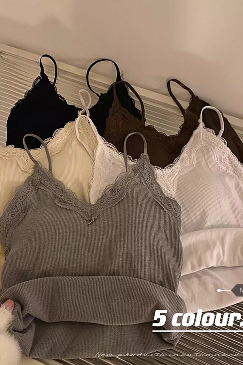 グレーのキャミソール女性用インナー、胸パッド付き、美しい背中、秋のレース、スリムフィット、万能なノースリーブトップ オータム 秋物 8571654405966306