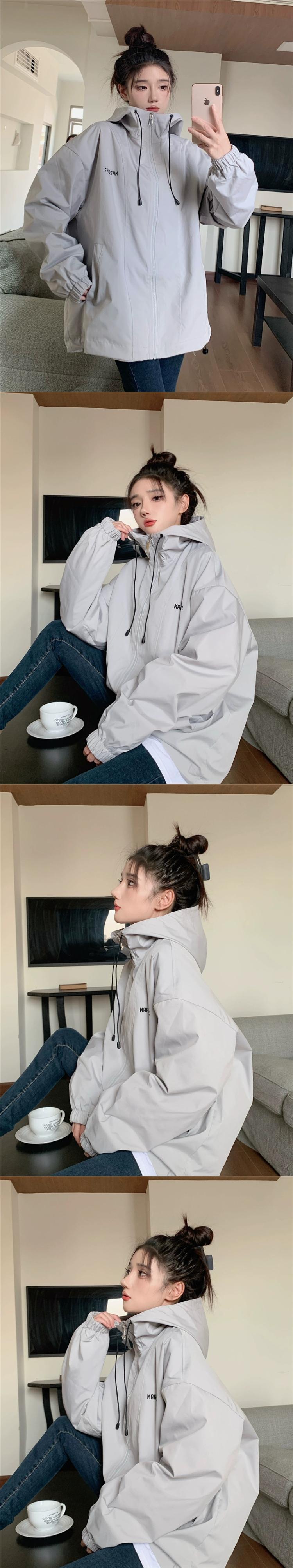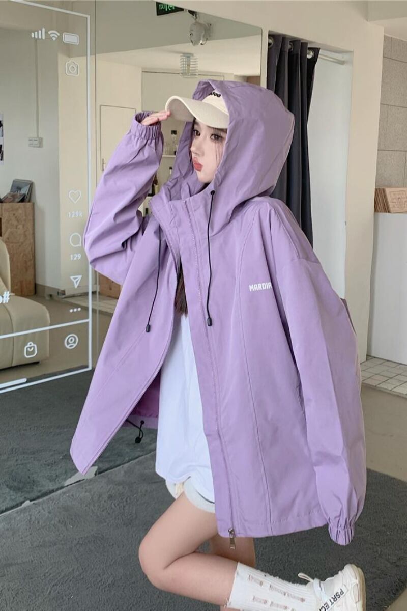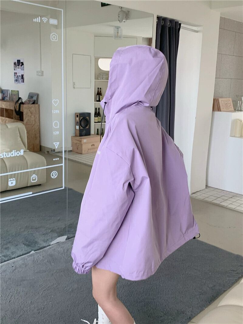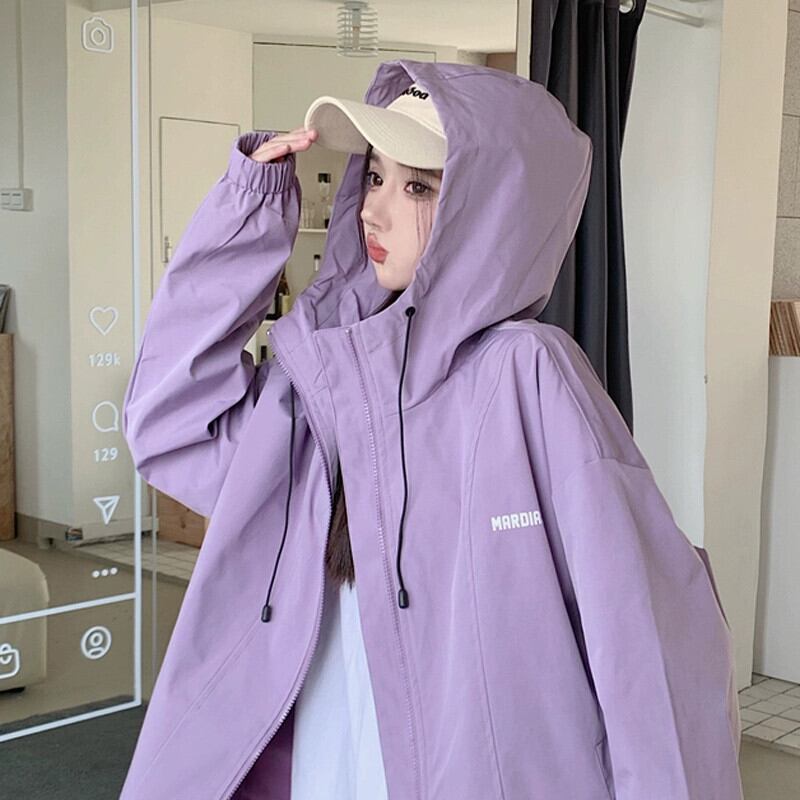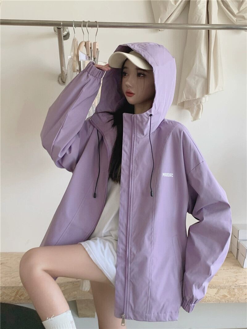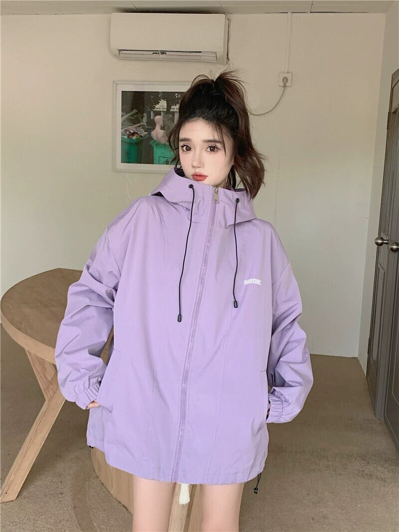 パープル フード付きジャケット レディース 2023 秋 アメリカン レトロ レイジー スタイル スポーツ トップ オータム 秋物 8571629318227080
