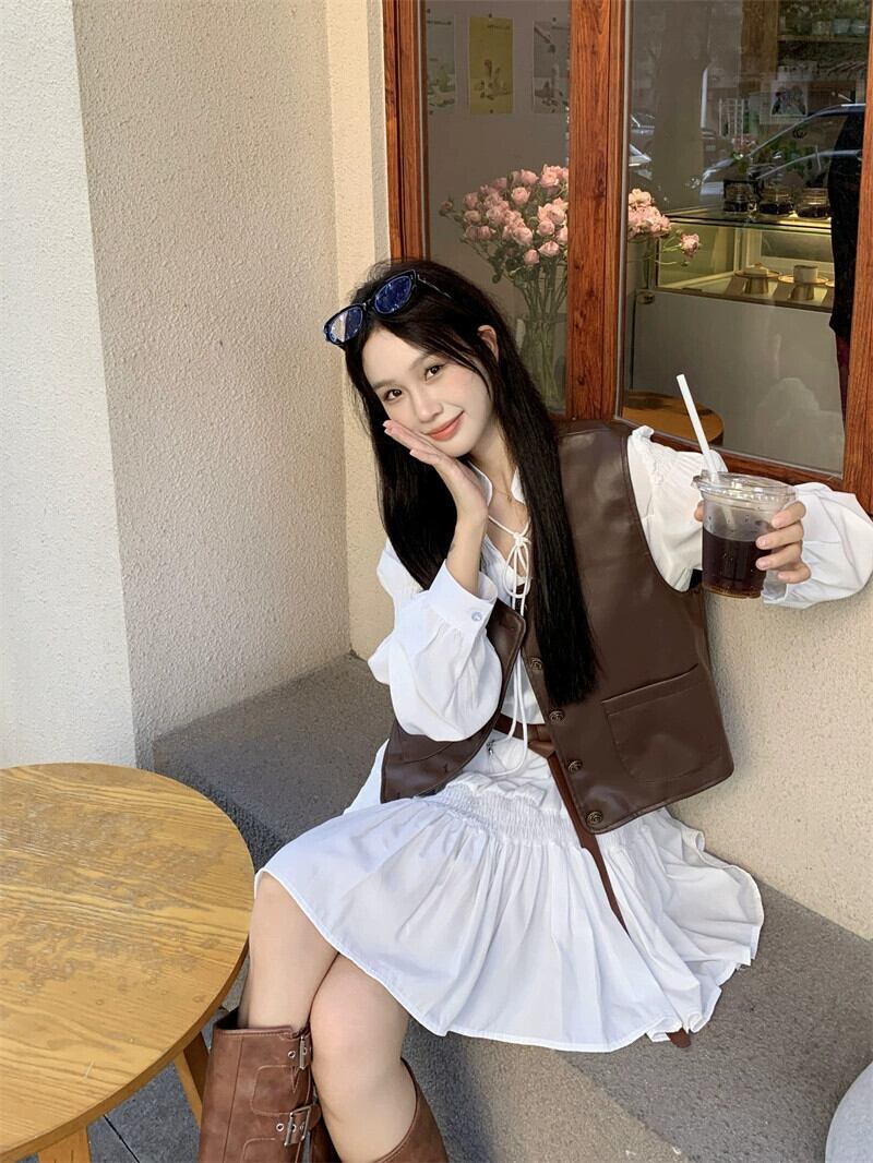 PU レザーベスト女性レイヤードベスト 2023 新しい秋スタイルショートベスト小人今年人気 レッド オータム 秋物 8571675764227163