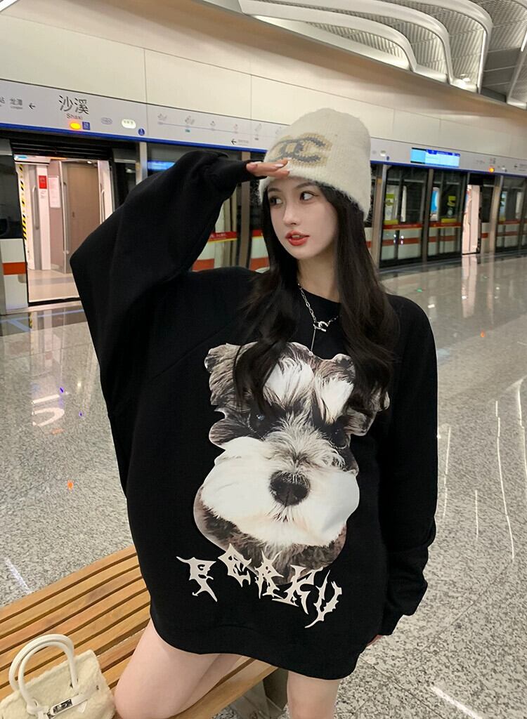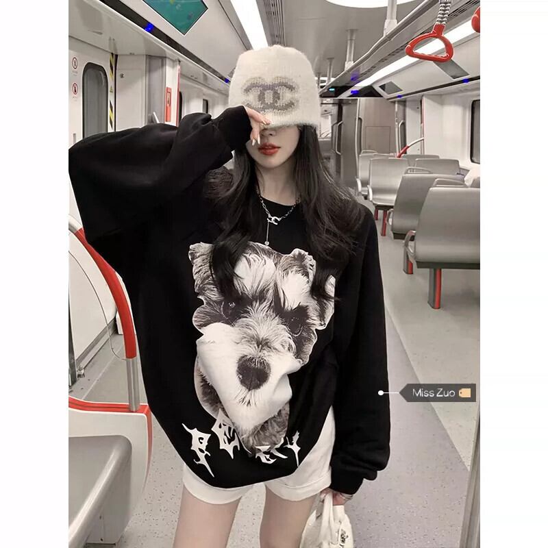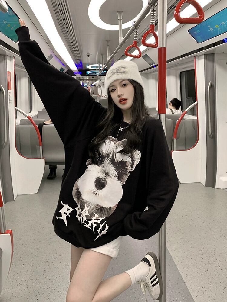 ミッドレングスラウンドネックスウェットシャツ女性お尻を覆う2023新しい秋アメリカンレトロハイストリート怠惰なスタイル長袖トップ ロング オータム 秋物 Oネック 8571658726234863