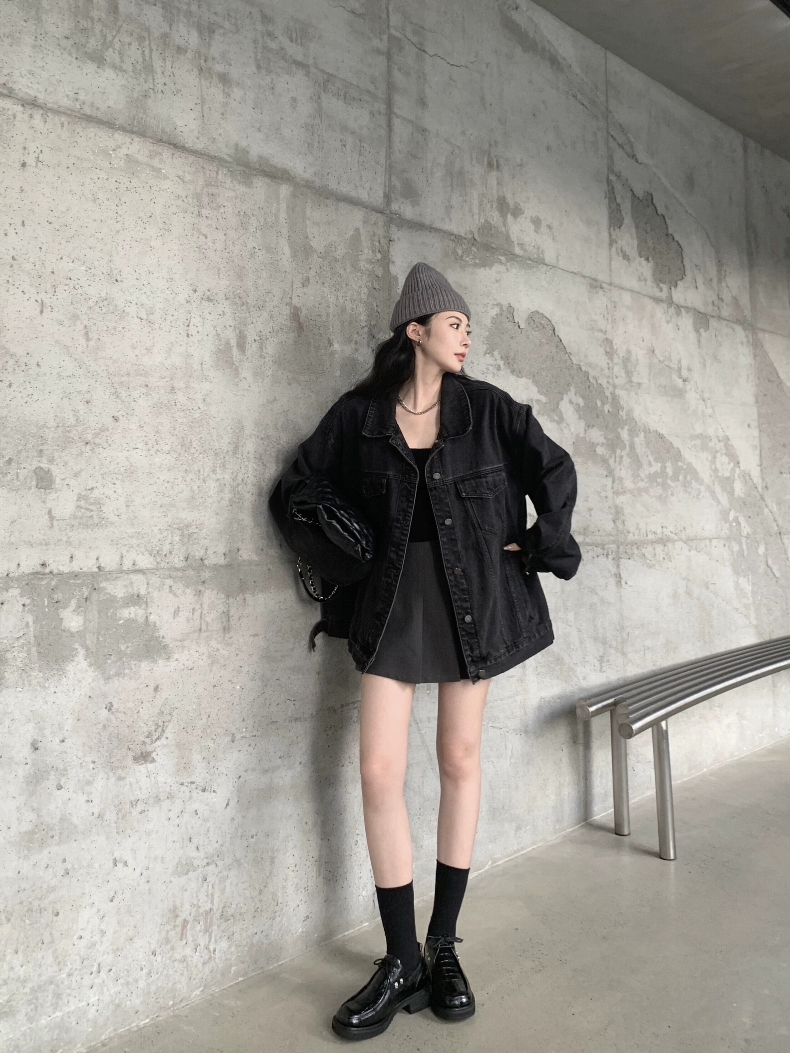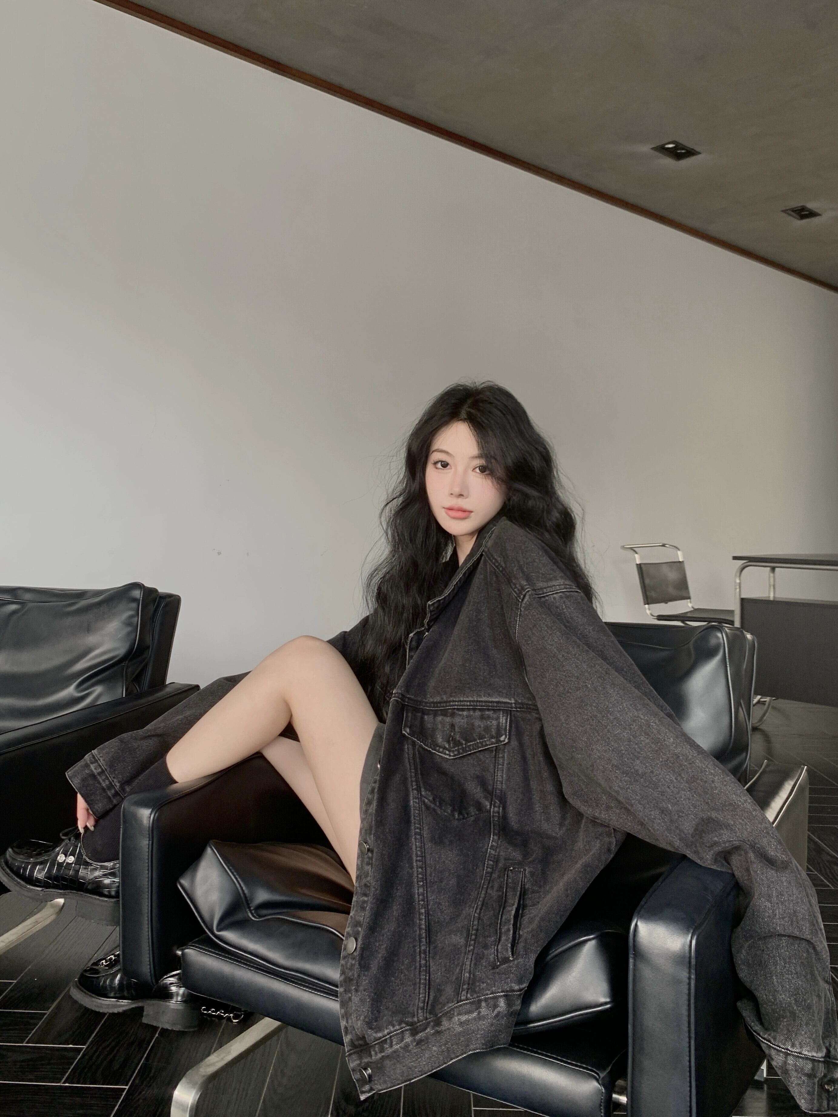 ウォッシュドブラックデニムジャケットレディース秋2023新しい香港スタイルレトロシックなルーズレイジージャケットトップ オータム 秋物 857169841309384