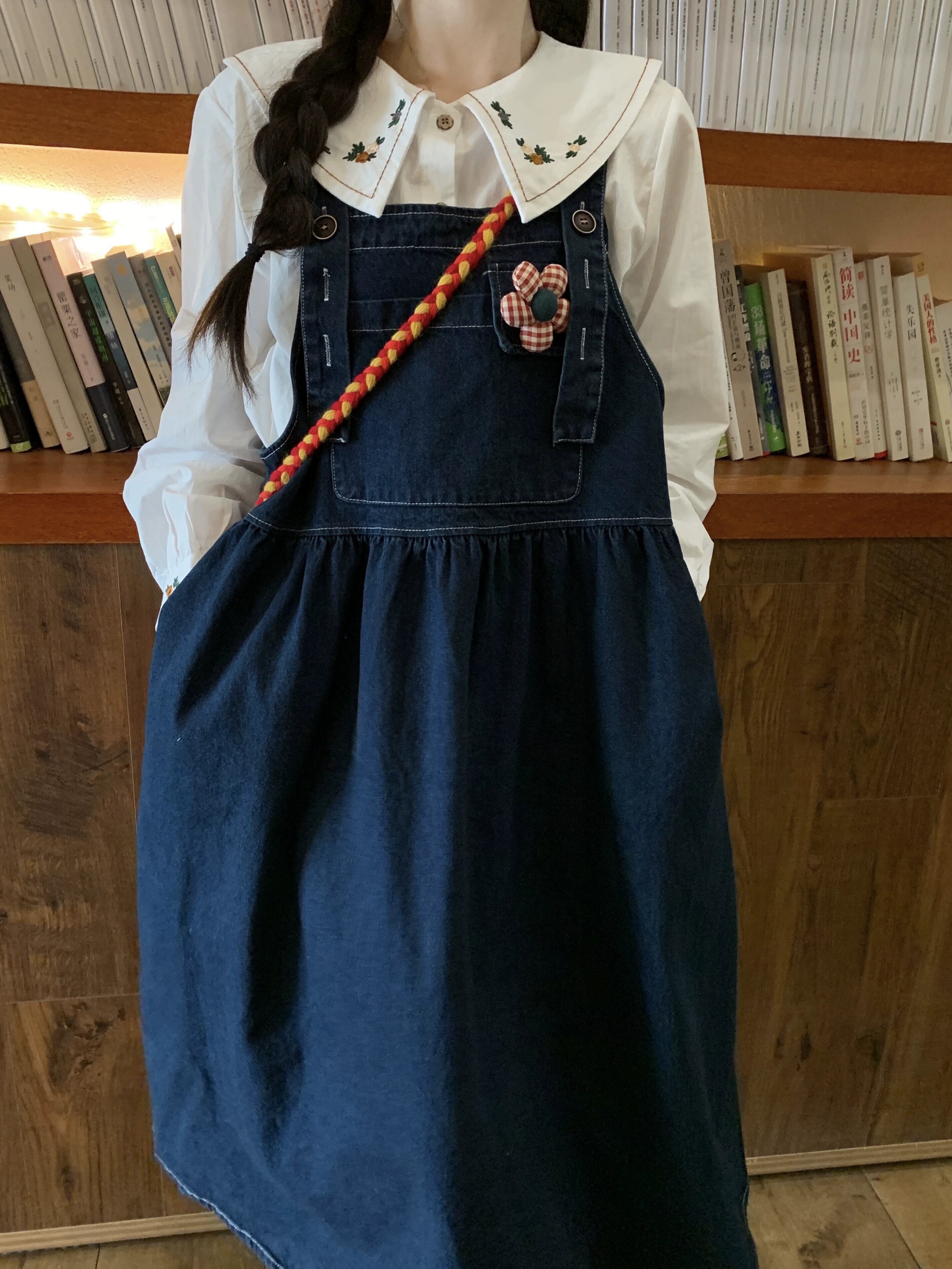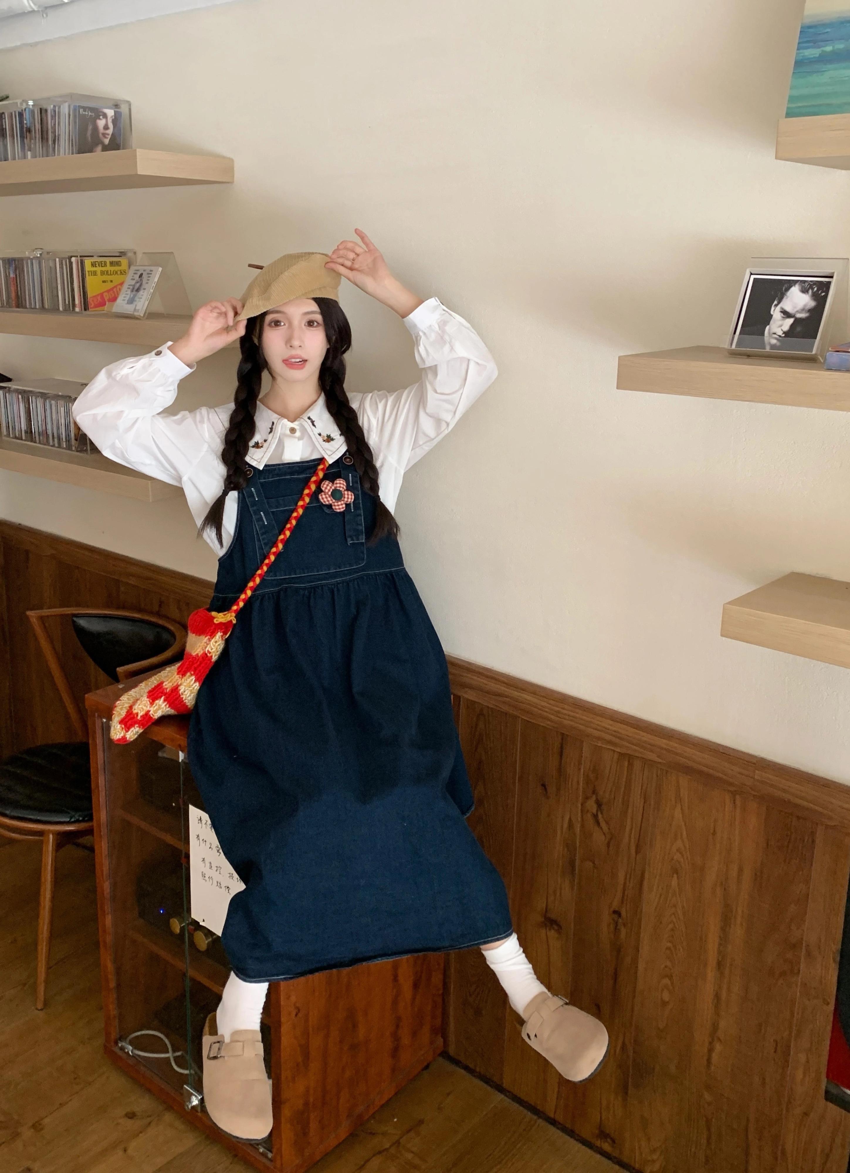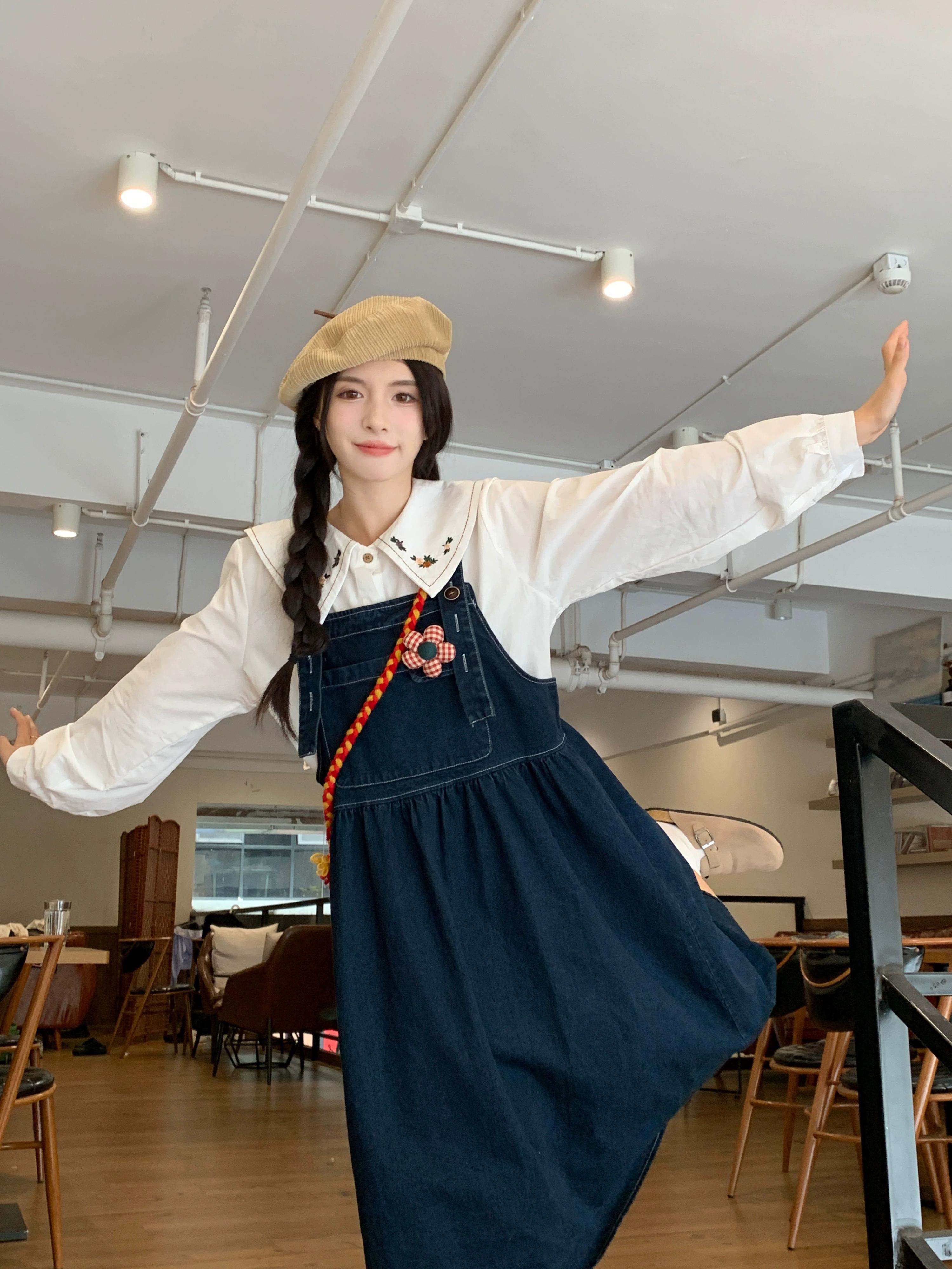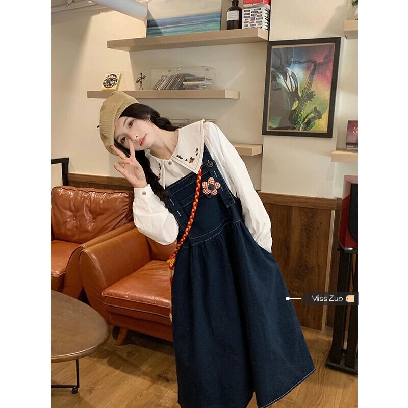 デニムサスペンダースカートドレス女性秋 2023 新しい甘いエストスタイルロングスカートお腹をカバーし、年齢の小柄な人を軽減します 大人ガーリー スウィート キュート カジュアル オータム 秋物 8571623752946895