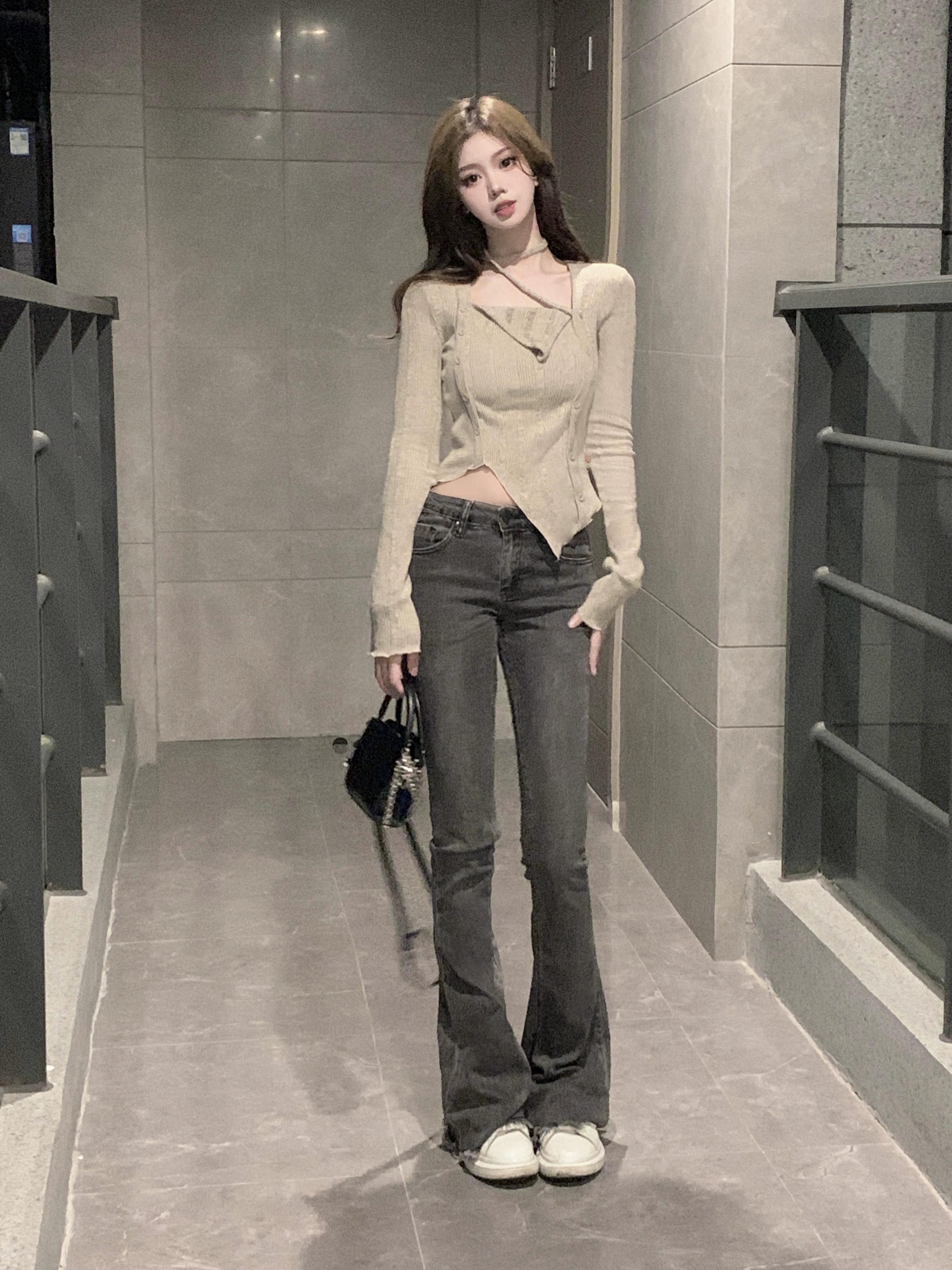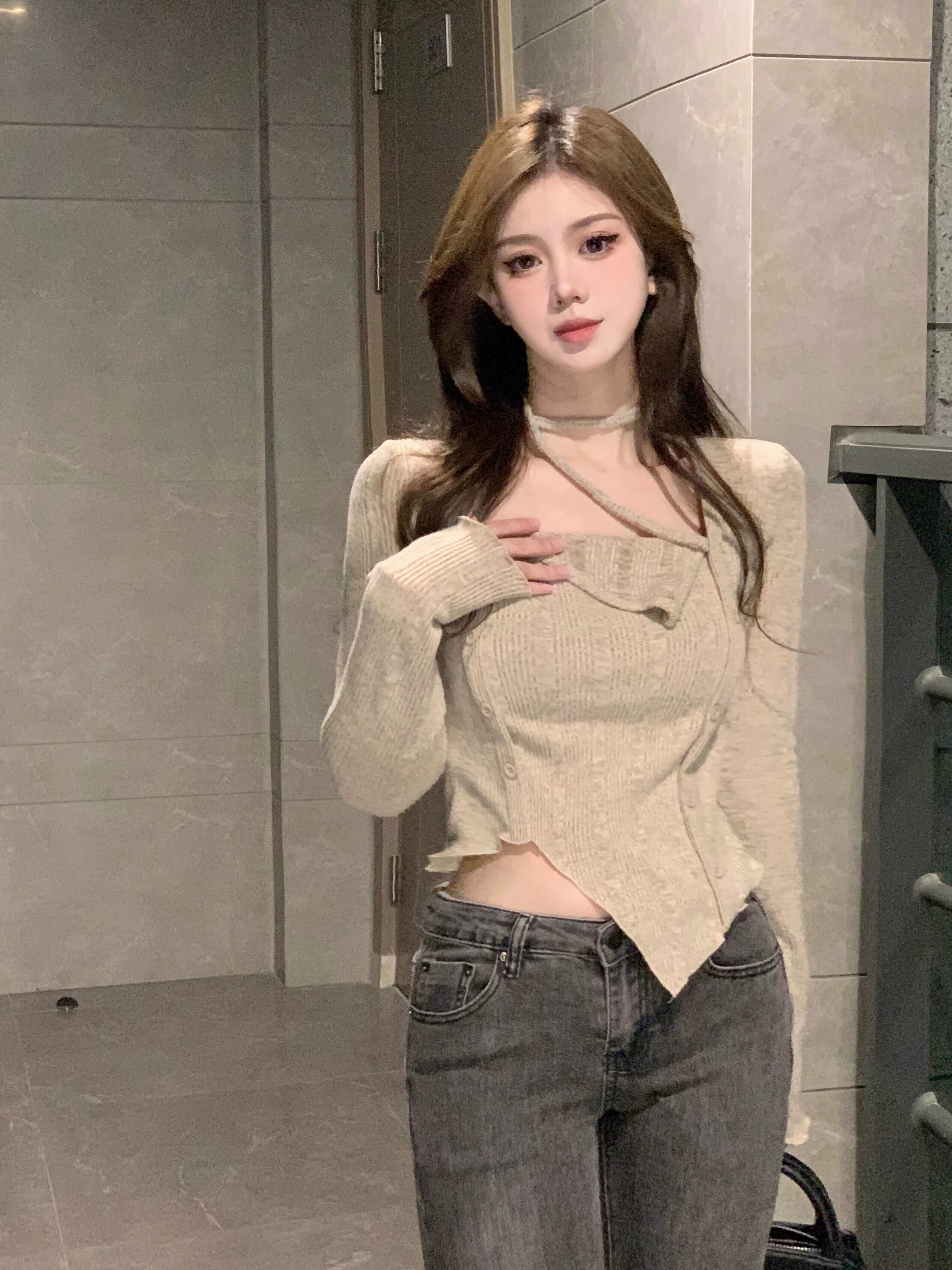 不規則なニットセーターの女性の秋と冬のインナーレイヤリングシャツ 2023 新しいセクシーなスリムスクエアカラーショートトップ オータム 秋物 ウィンター 冬物 スクウェア 8571659576579328