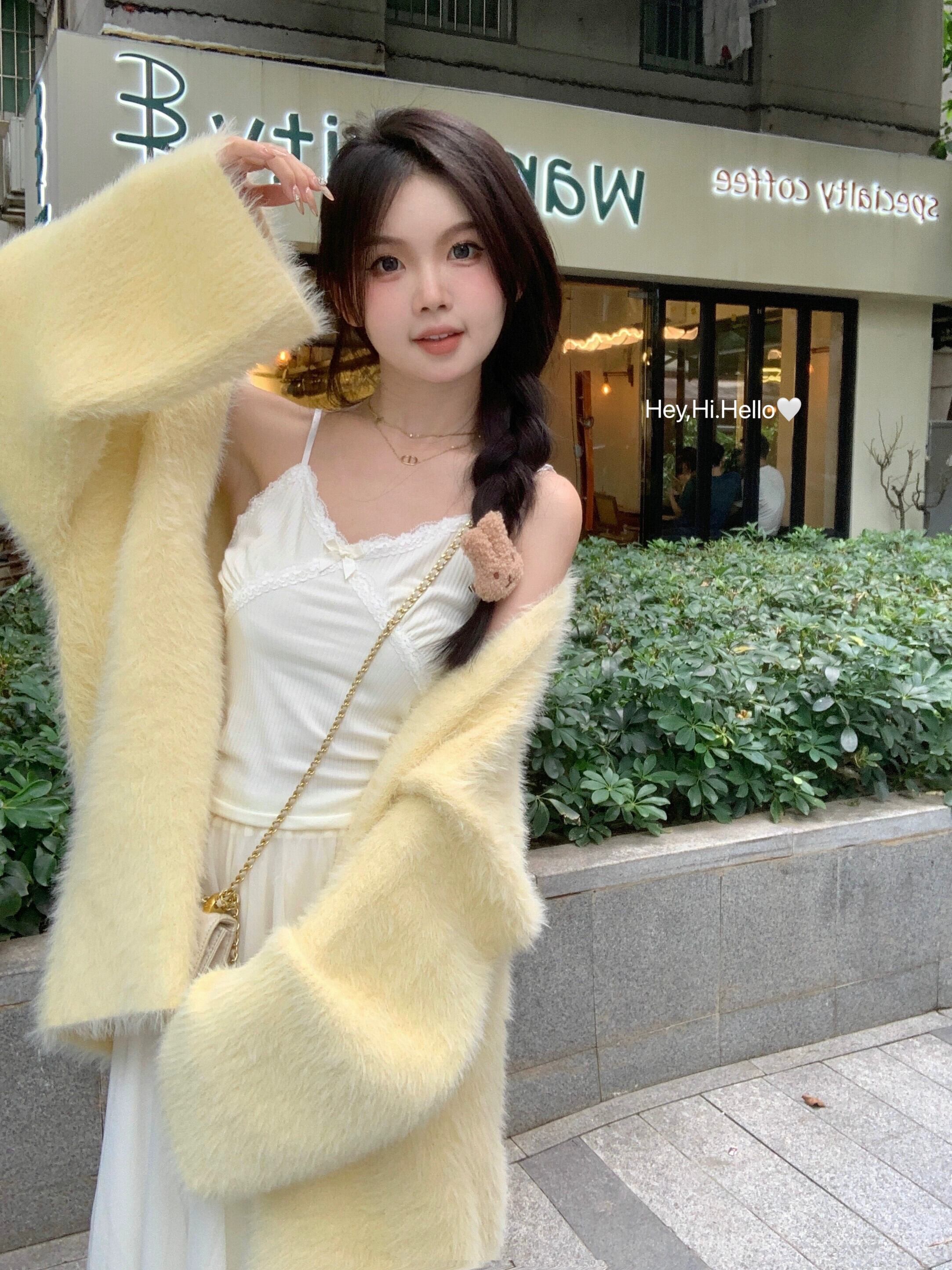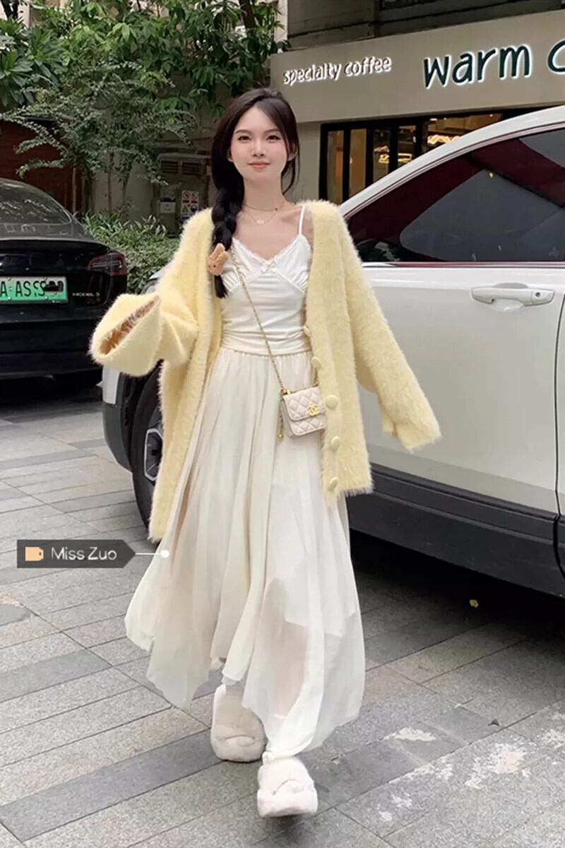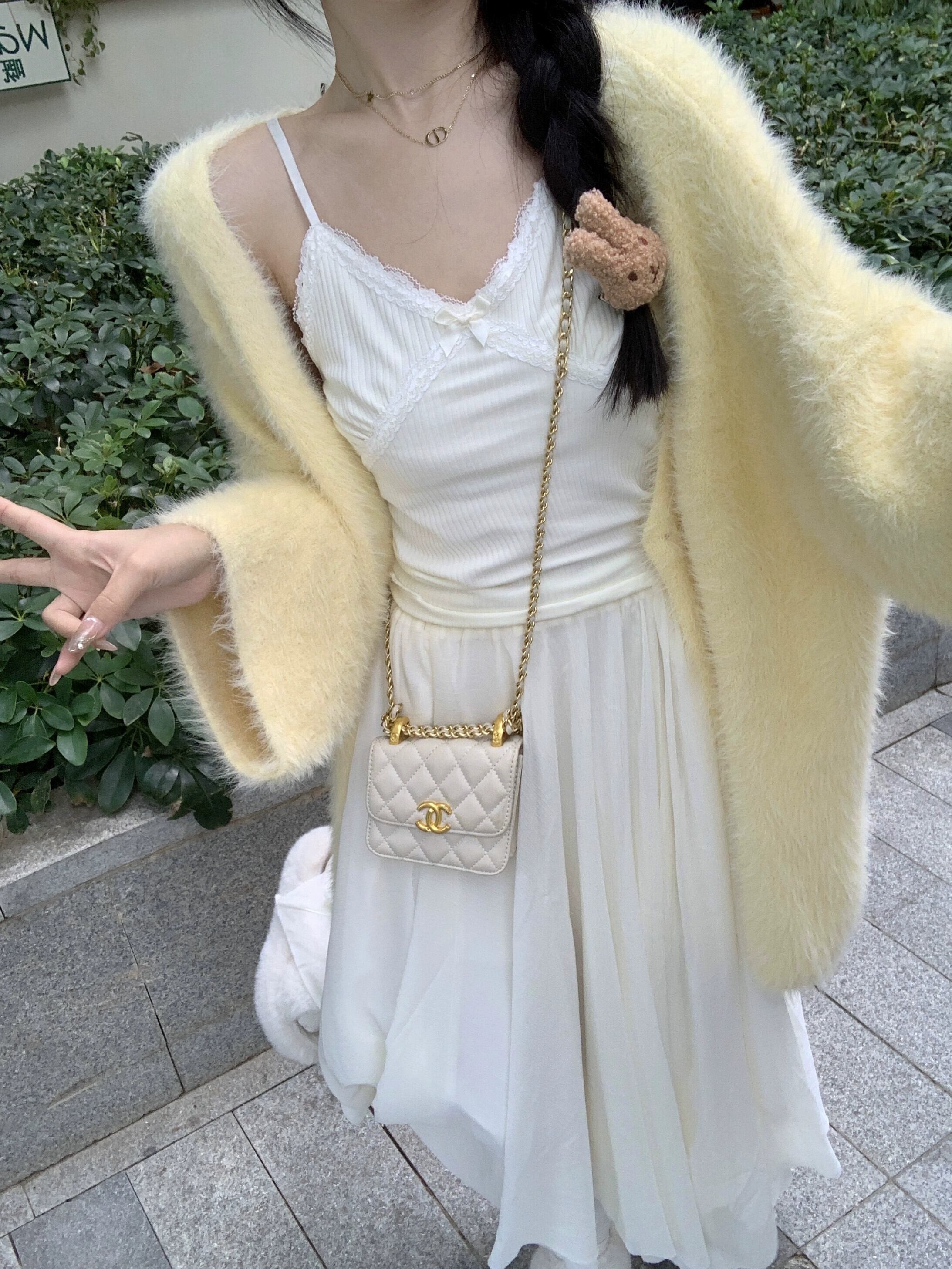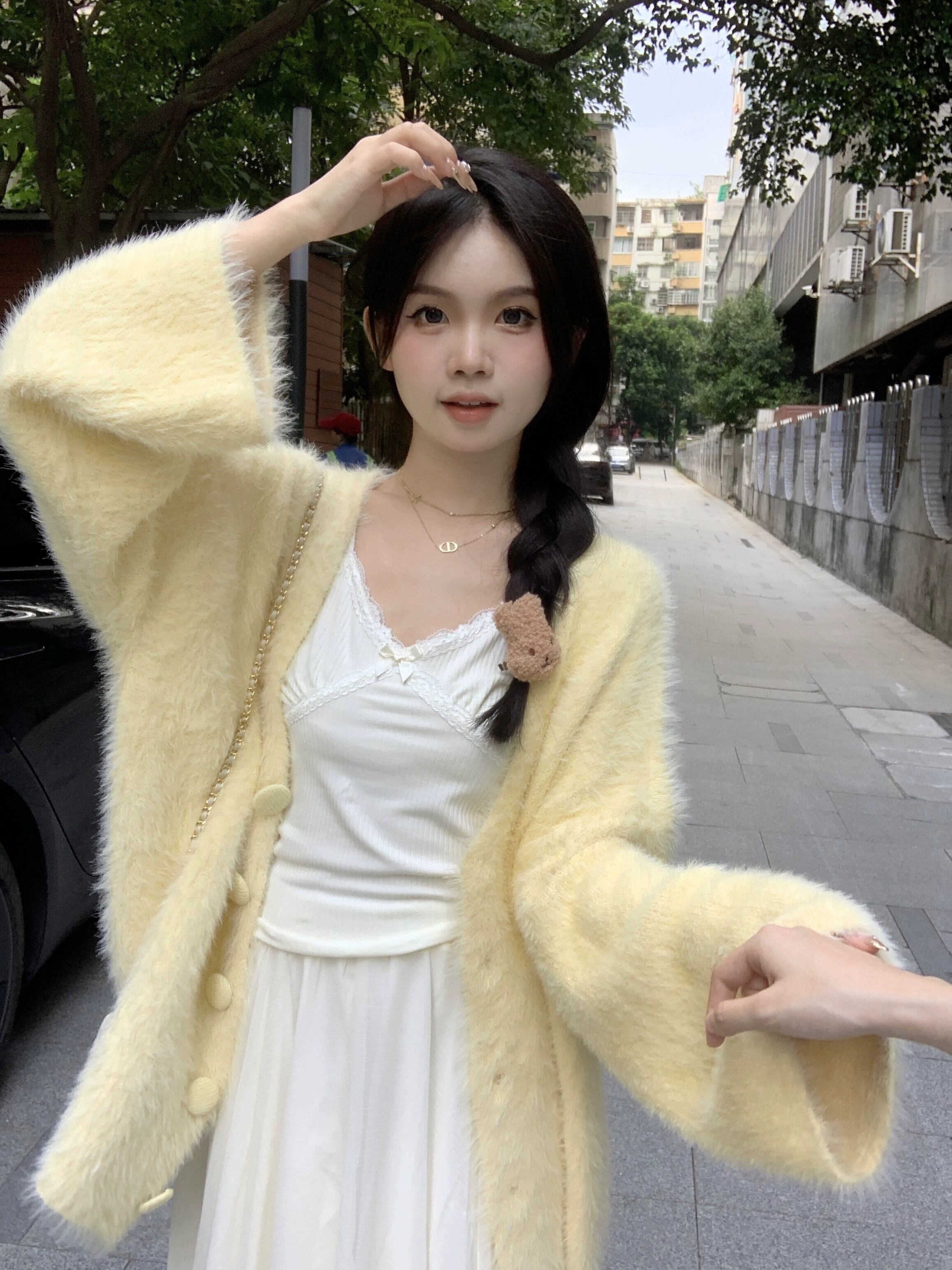 黄色のソフトワックスセータージャケット女性の秋 2023 新しいミルクフフ甘い優しい怠惰なスタイルのニットカーディガン 大人ガーリー スウィート キュート カジュアル オータム 秋物 8571691729505214