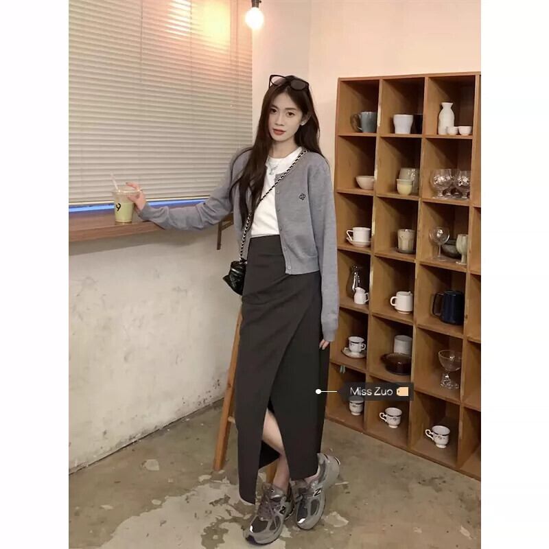 グレーニットカーディガンジャケット女性の秋のショートセーター2023小さな甘い年齢を軽減するショートトップ 大人ガーリー スウィート キュート カジュアル オータム 秋物 8571627682819314