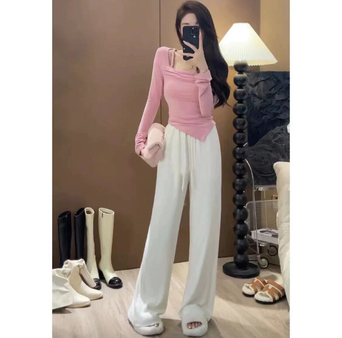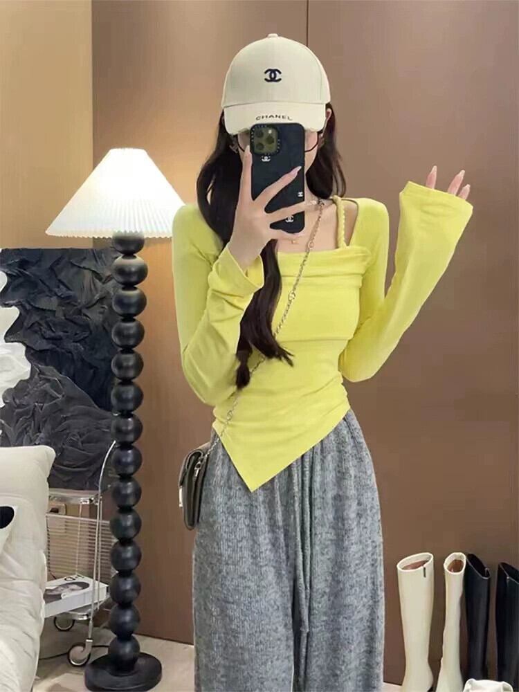 イレギュラートップレディース2023秋新作スクエアネックショートボトムシャツピュアデザイアスリム長袖Tシャツ ロング オータム 秋物 スクウェア 8571666312698237