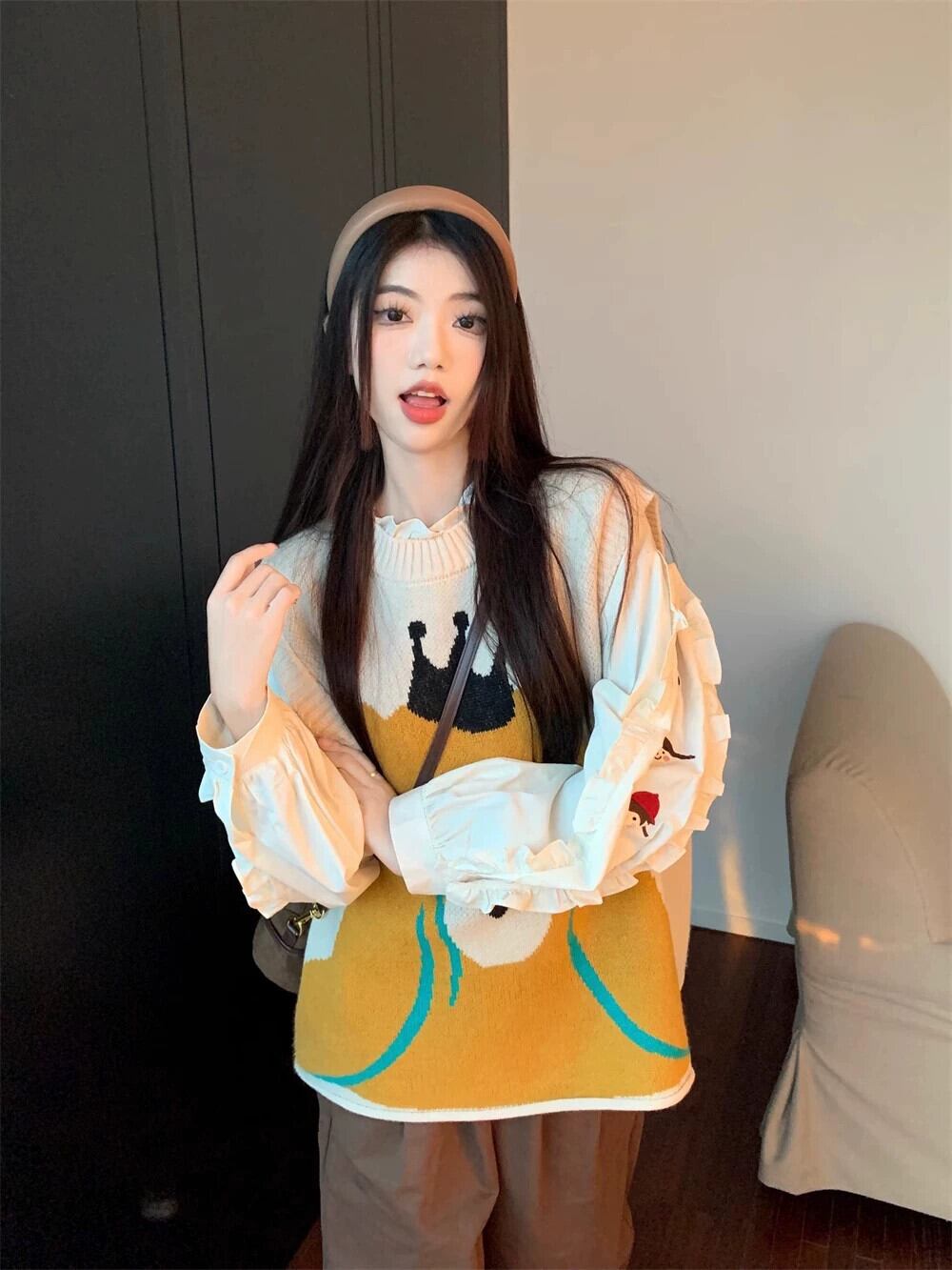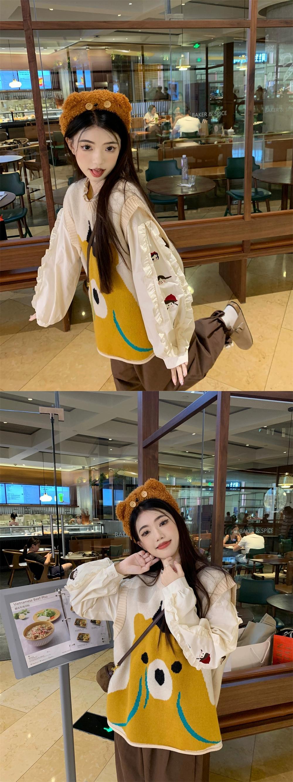 漫画クマニットベスト女性の秋の外層セーターチョッキ甘い ese かわいいベスト 大人ガーリー スウィート キュート カジュアル オータム 秋物 8571629080600397