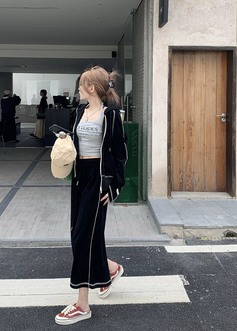 黒カジュアルスポーツスカート女性秋の新ハイウエストスリットワンステップスカートアメリカンレトロミッドレングススカート ハイウェスト ブラック オータム 秋物 8571680612346347