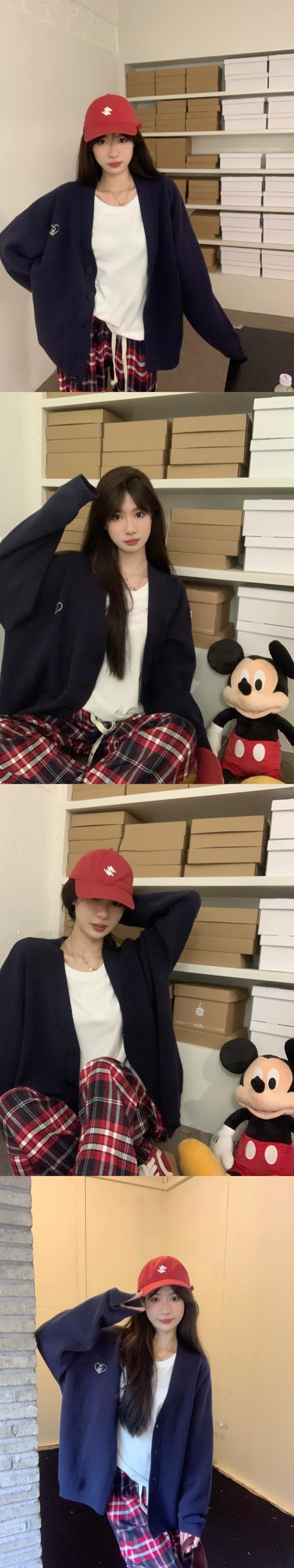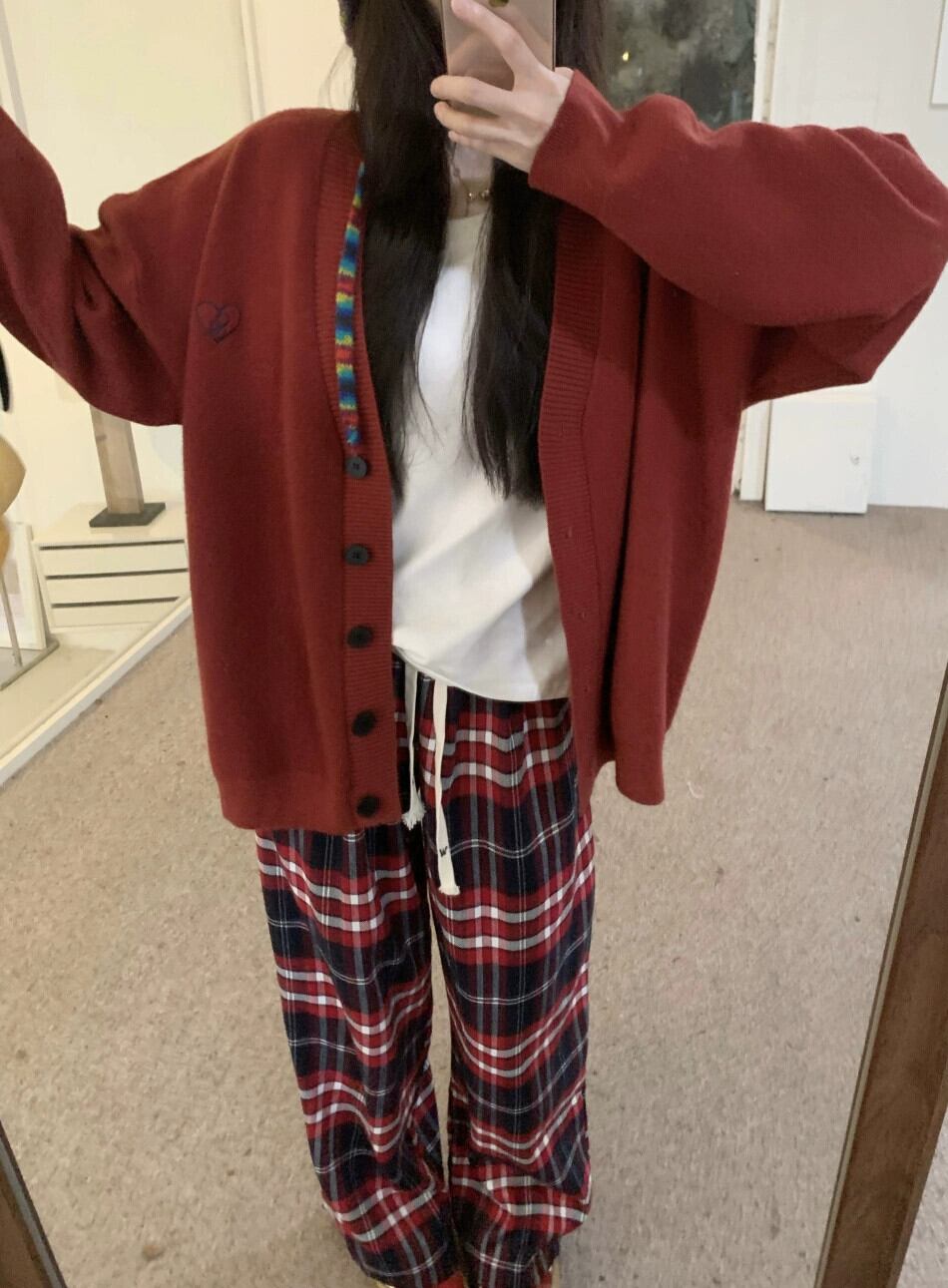 黒刺繍セータージャケット女性秋 2023 新しいルーズスタイル怠惰なスタイルアウター長袖ニットカーディガン ロング レッド ブラック オータム 秋物 8571694684899125