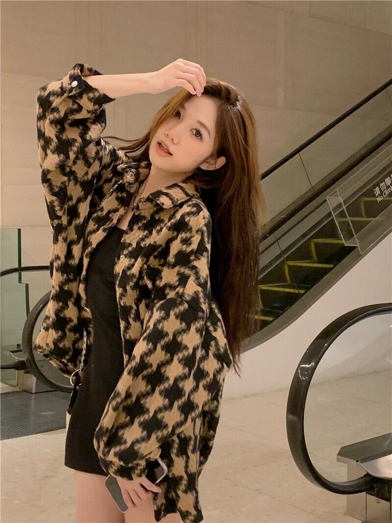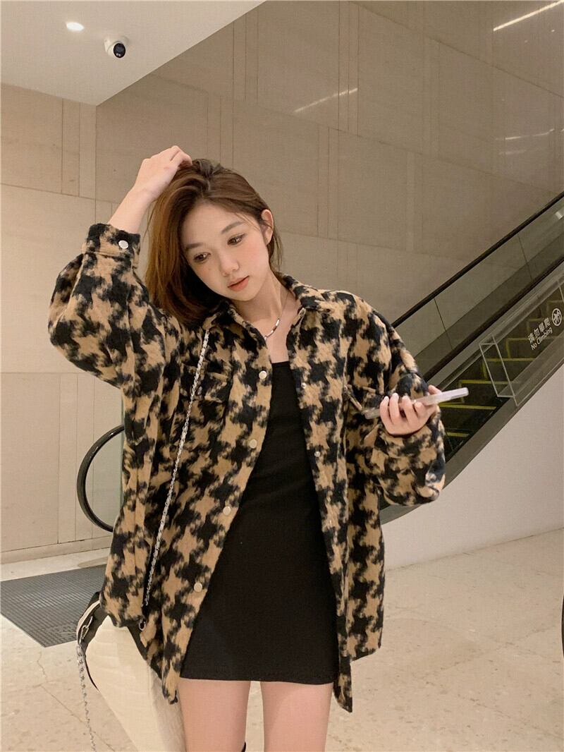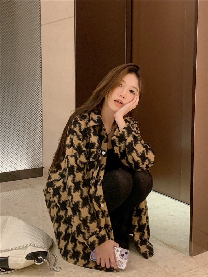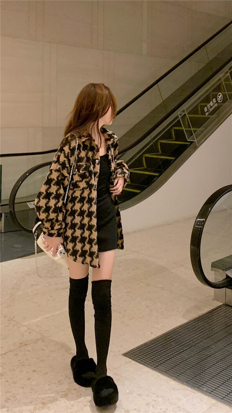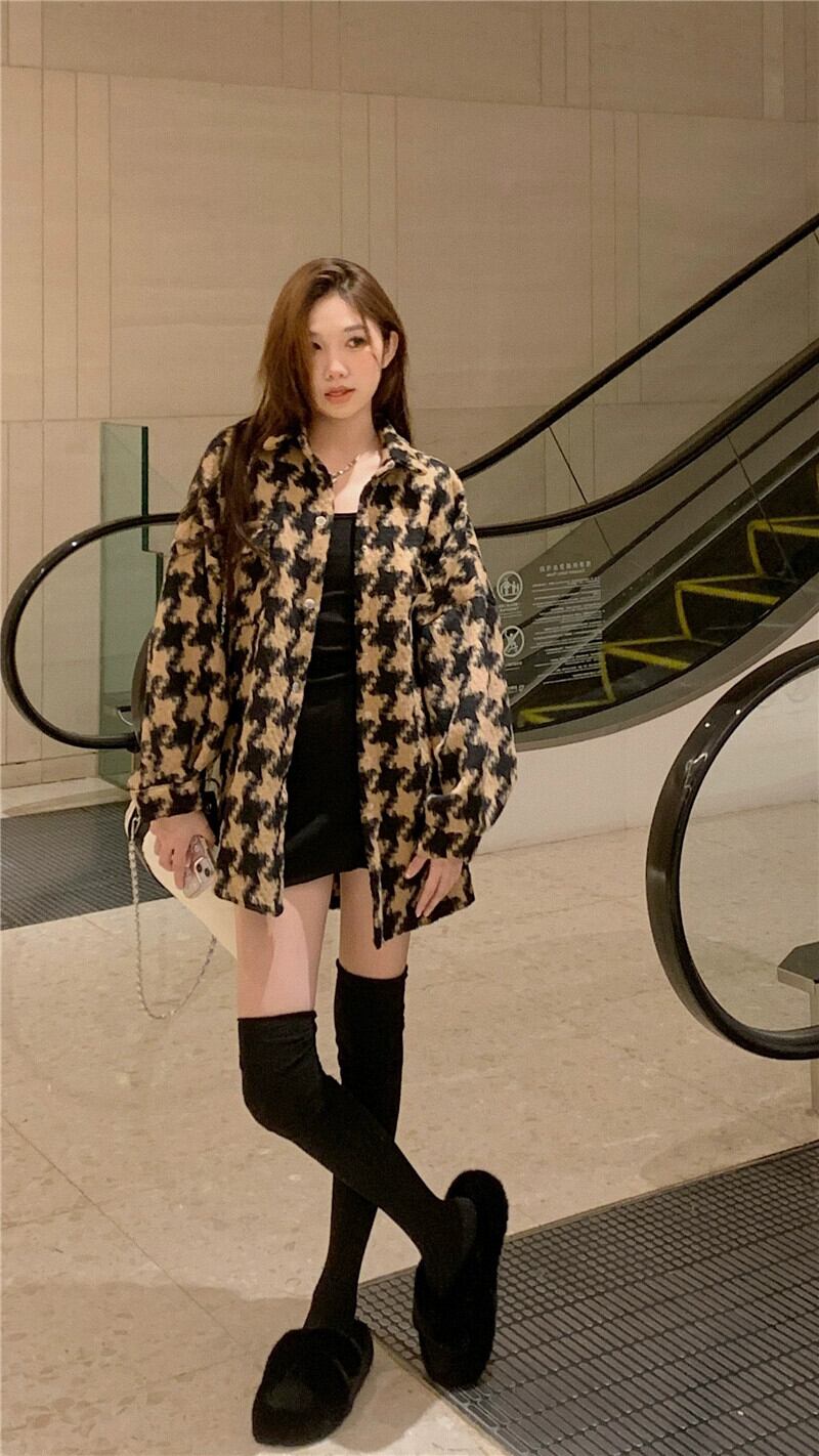 秋の千鳥格子のウールのコートの女性、ファッショナブルでハイエンド、超見栄えの良い、ミディアムとロングのウールのコート小人 オータム 秋物 8571677511803558