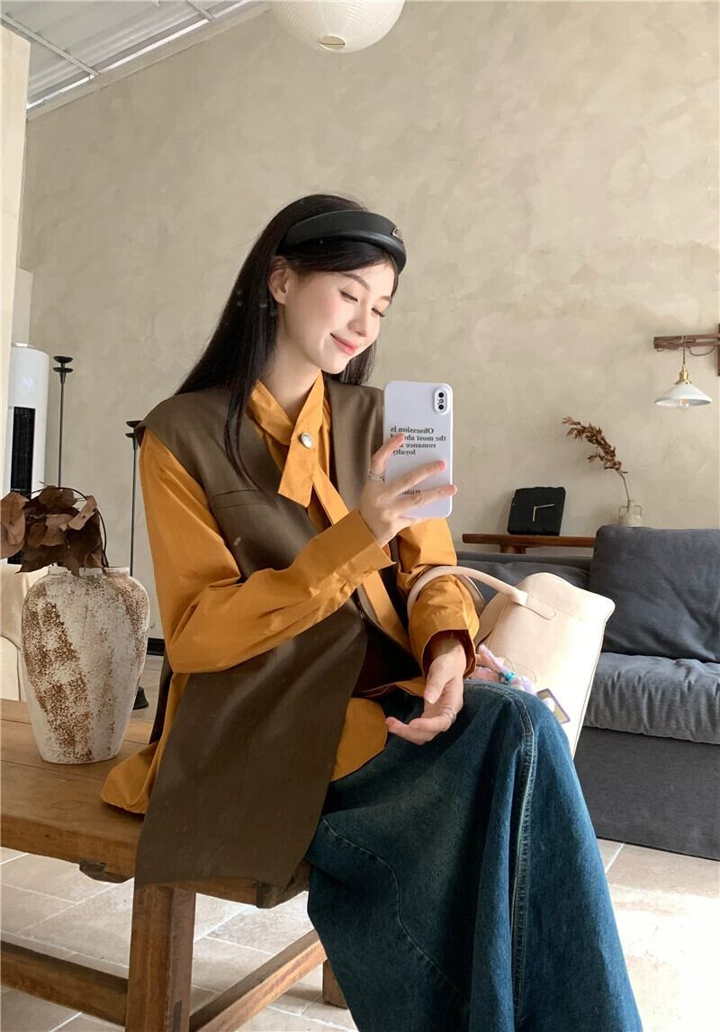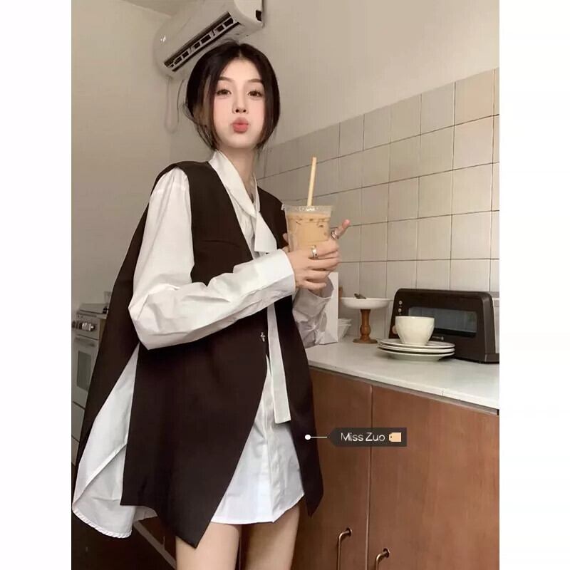 スーツベストジャケット女性秋 2023 新スタイルマッチングシャツ重ねチョッキデザインレトロスリットベスト オータム 秋物 8571663844900825