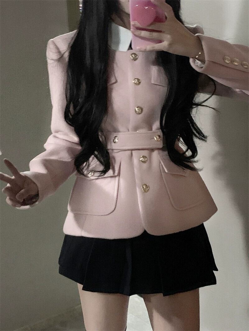 ピンクのカレッジスタイルのウールのコートの女性の秋 2023 新しいスタイル今年の人気の高級ウェアトップ小人 オータム 秋物 8571628847951492