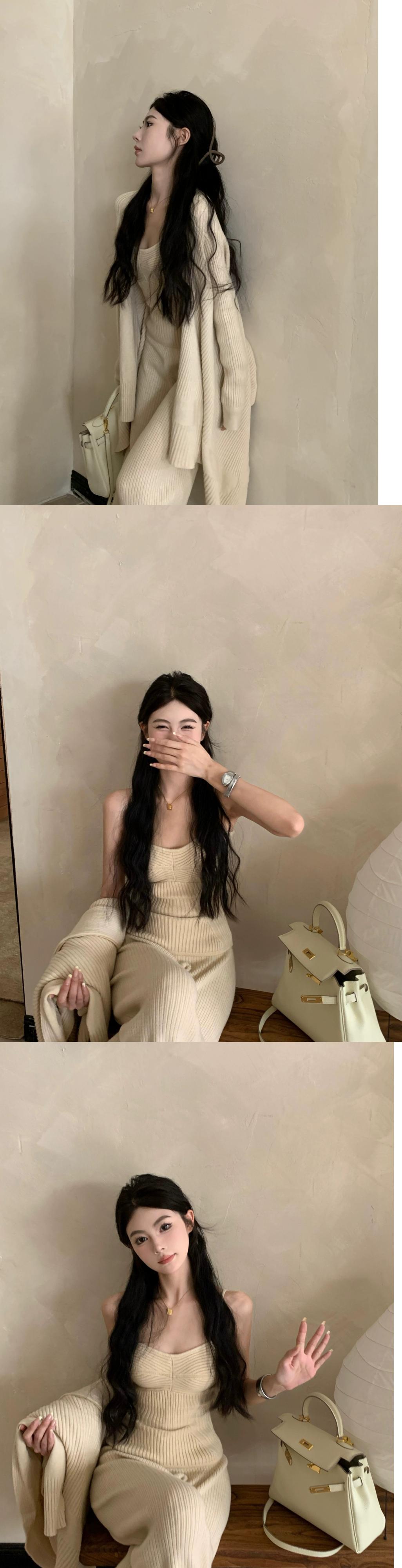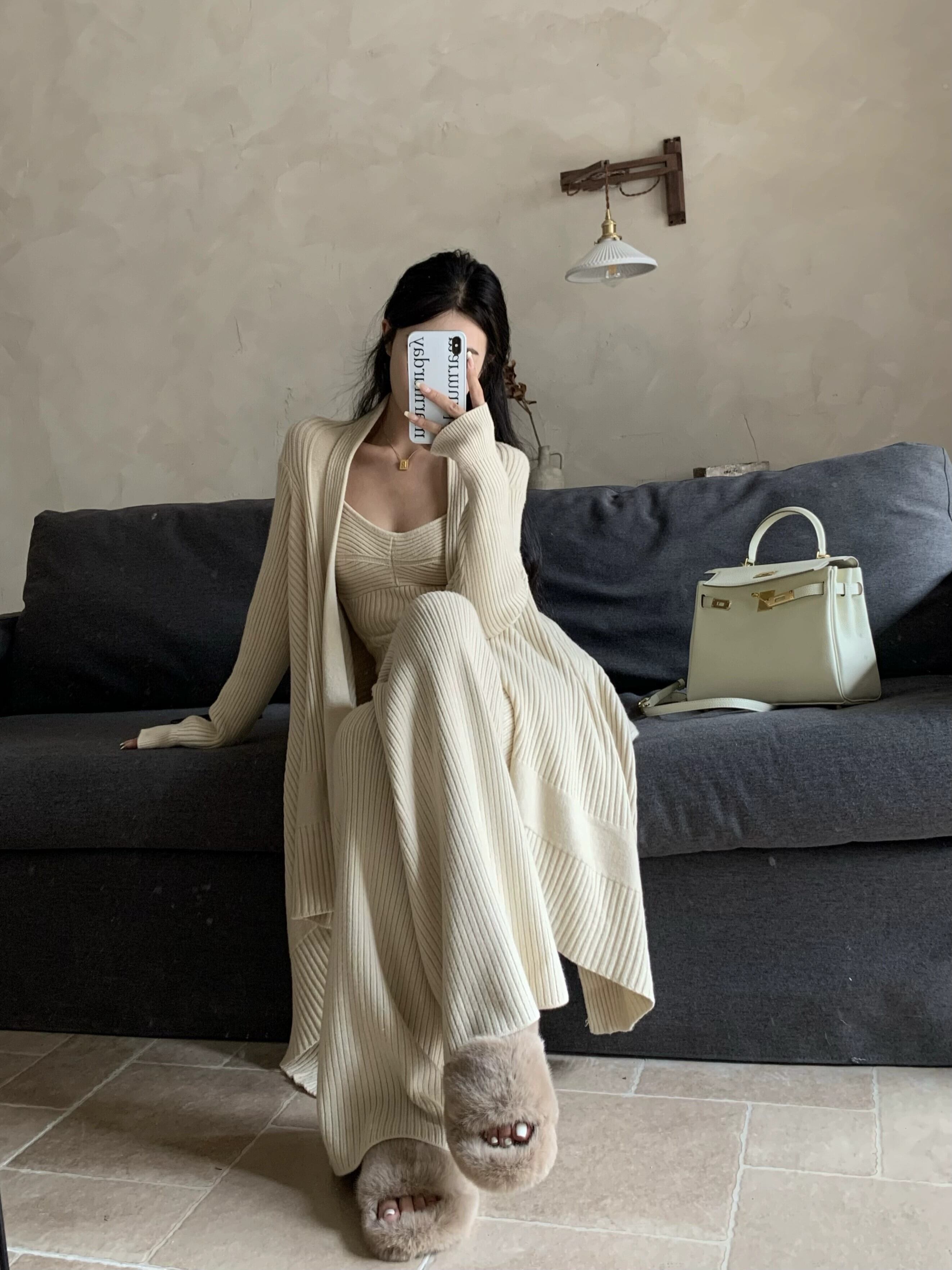 アプリコットミドル丈セータージャケット女性秋 2023 新しいスタイル優しい怠惰なスタイルソフトワックス状不規則なニットカーディガン オータム 秋物 8571690924720996