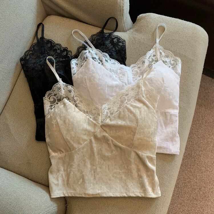 白いベルベットのキャミソールレディーススーツ、ボトリングシャツ、秋、胸パッド付き、美しいバックラッピングと露出防止トップス ホワイト オータム 秋物 8571686945143291