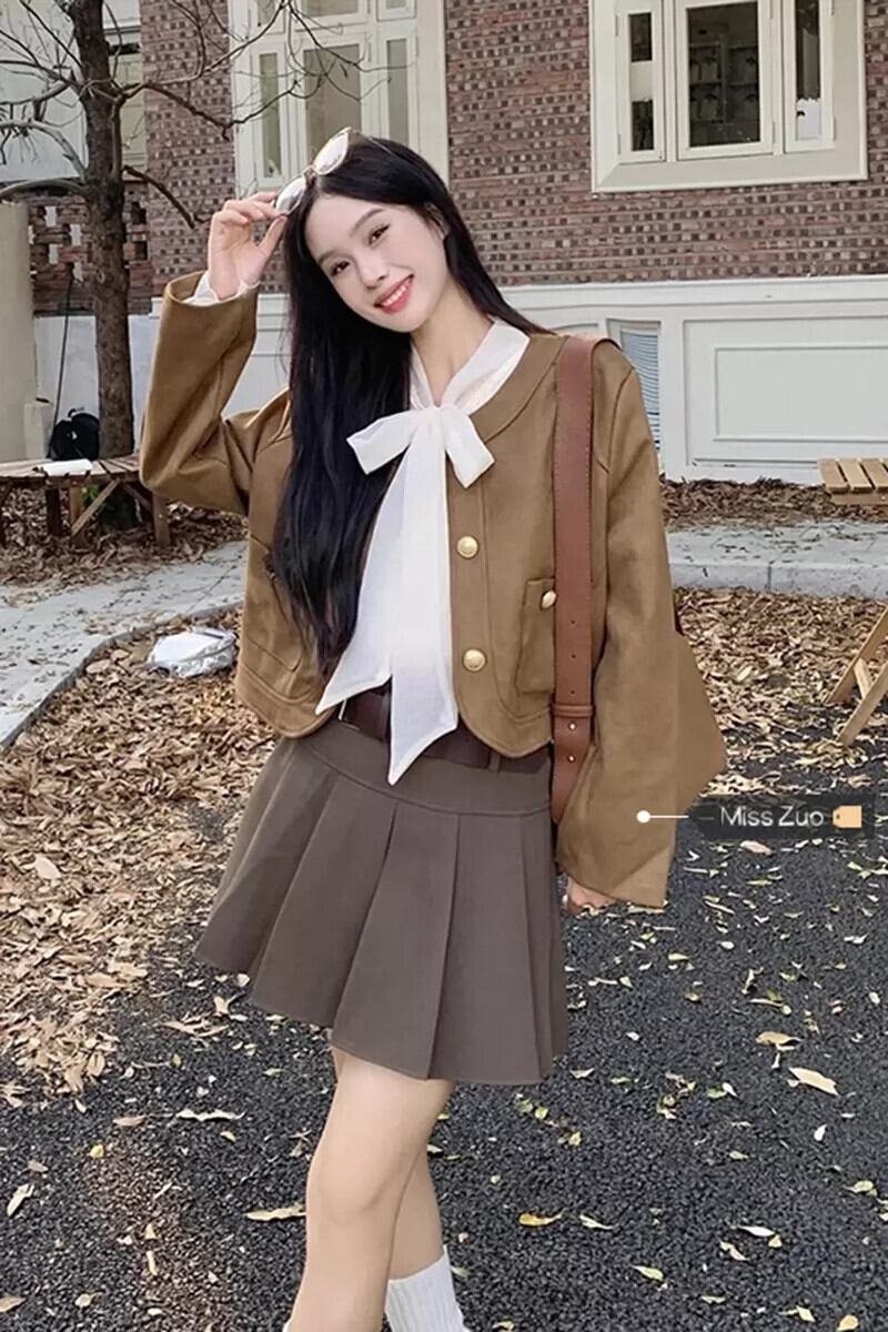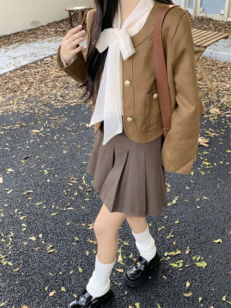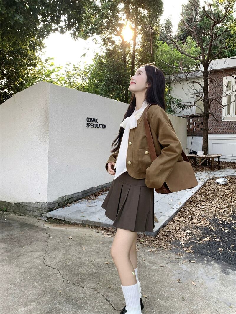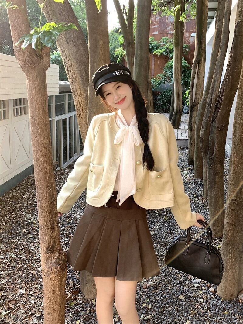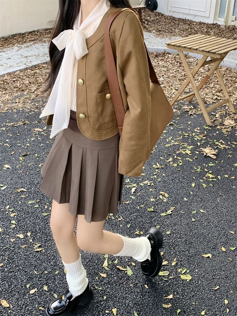 色:カーキジャケット,ベージュコート,アプリコットシャツ,スカート