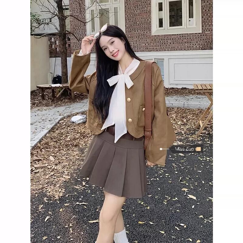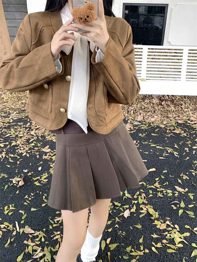 フェイクスエードの小さな香りのよいジャケットの女性秋メイラード着用2023新しいスタイルのユニークな超格好良いショートトップ スウェード オータム 秋物 ファー 8571648147822757