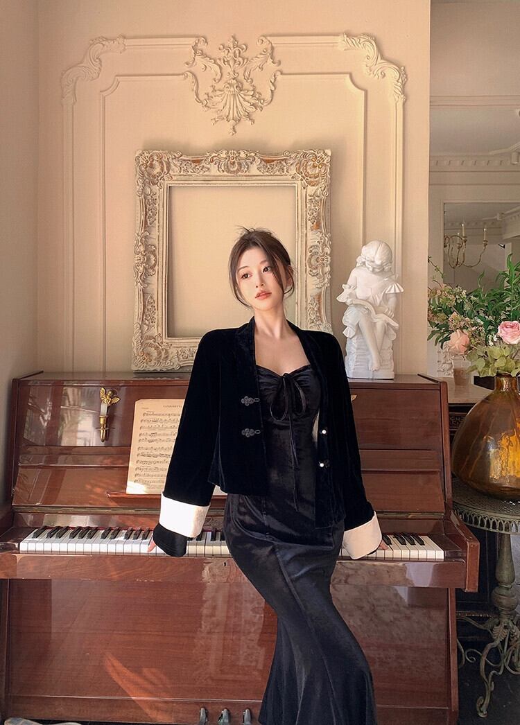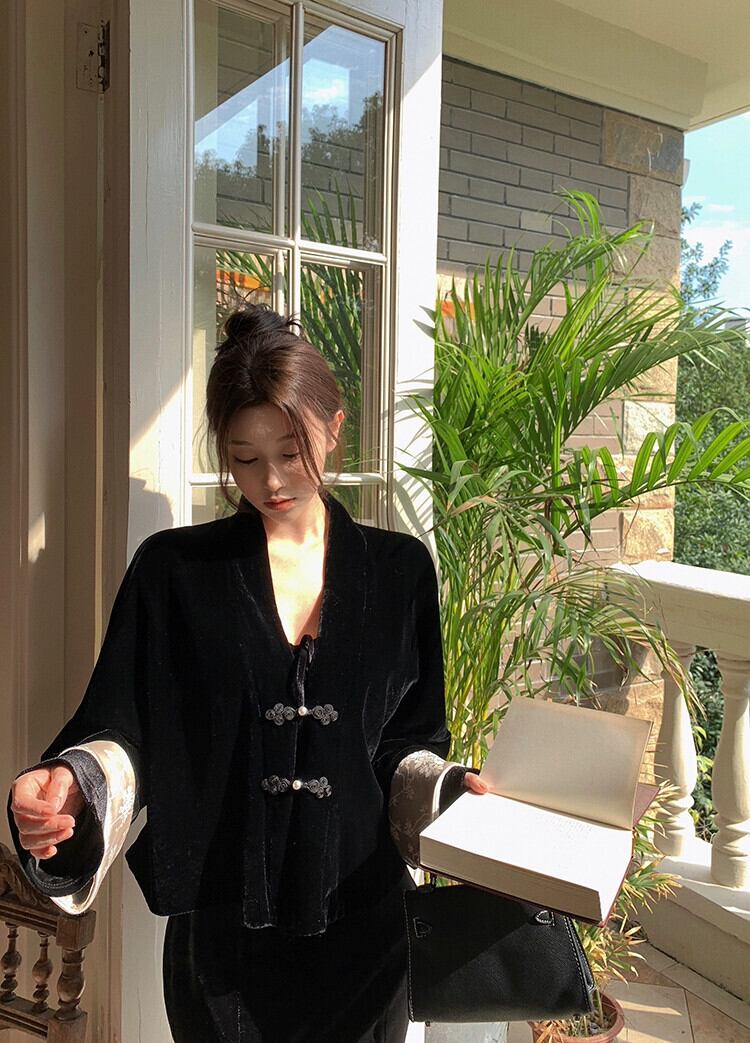 中国風の国民風のベルベットのジャケットの女性の2023年秋冬の新しいハイエンドで超格好良い気質のショートボタントップ オータム 秋物 ウィンター 冬物 8571694636806771