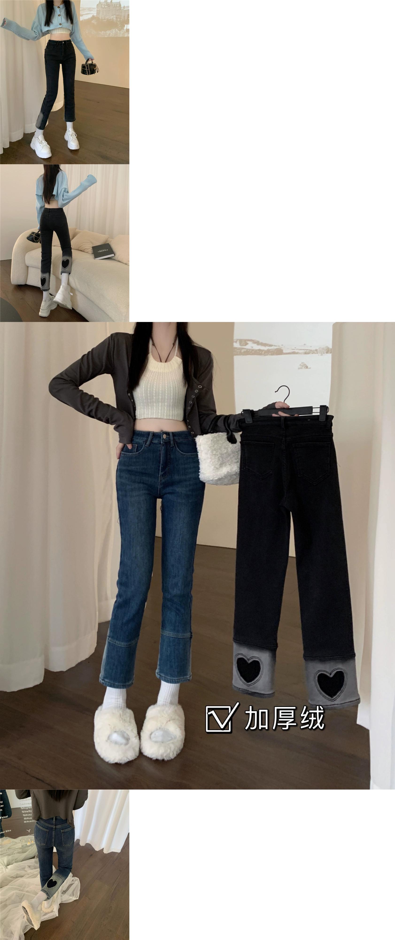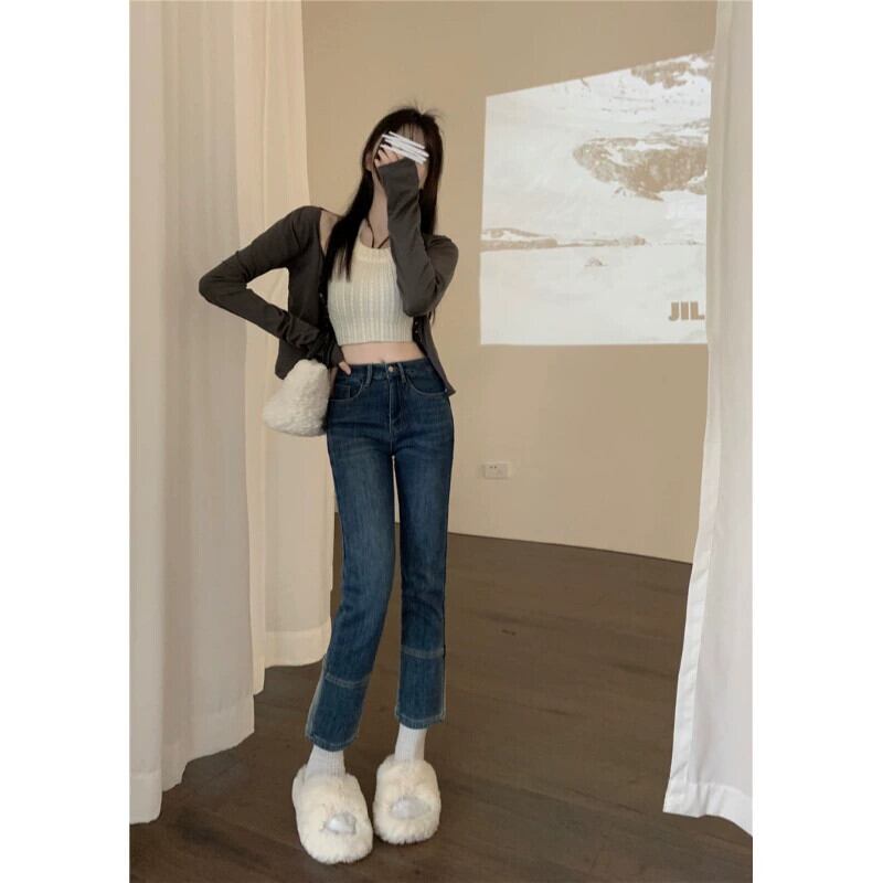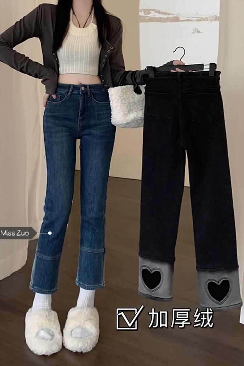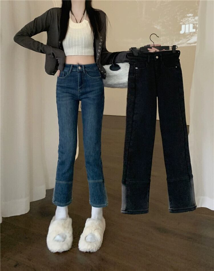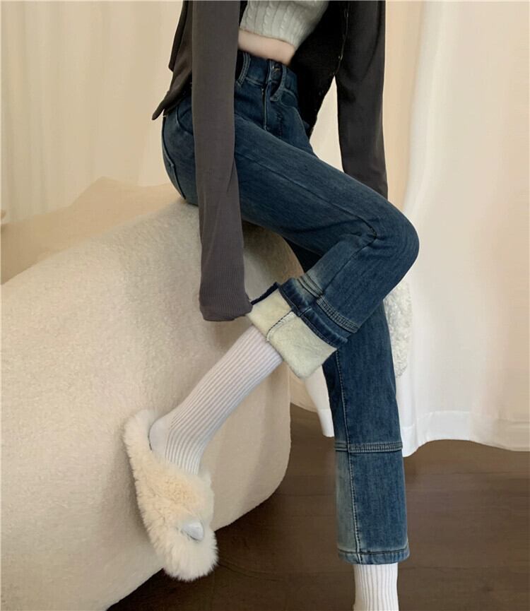 ベルベット肥厚ストレートジーンズ女性 2023 秋と冬の新しいスタイルスリムシガレットパンツ小人 オータム 秋物 ウィンター 冬物 8571652353043924