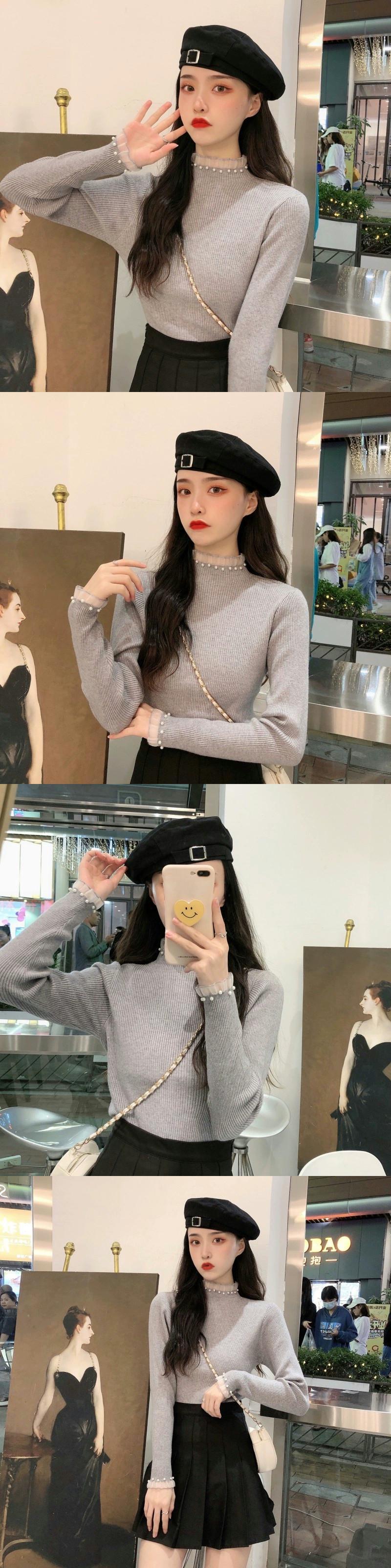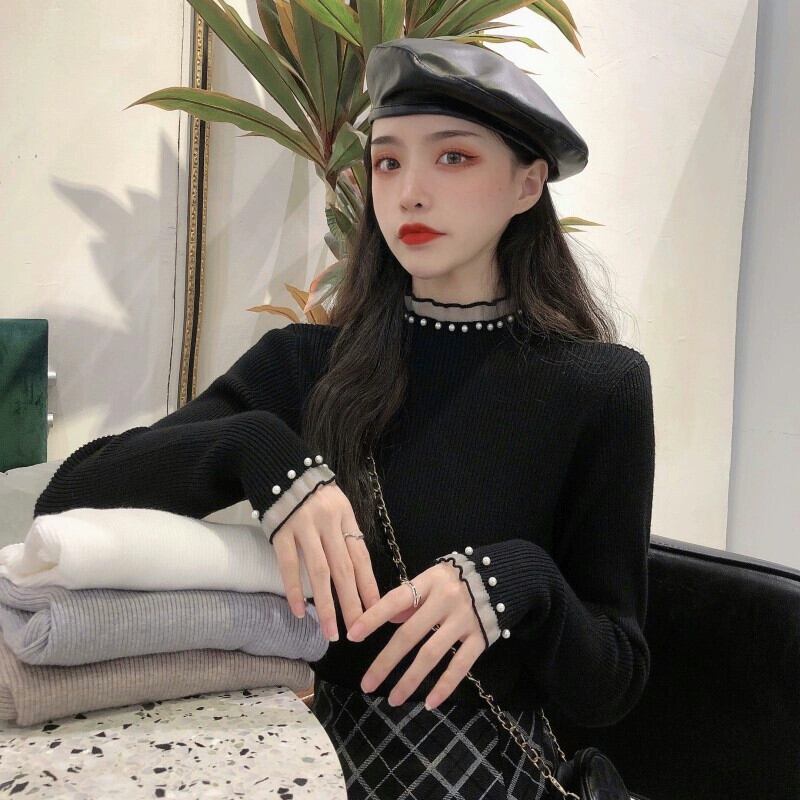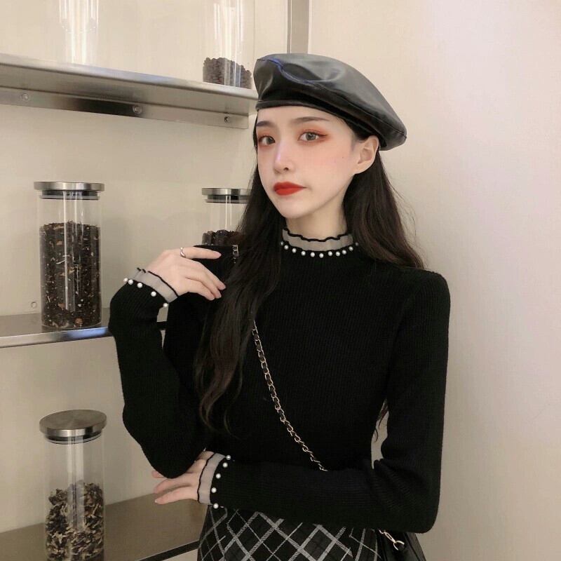ハーフタートルネックセーター女性の秋と冬のインナー重ね着シャツ 2023 新しいスタイルのハイエンドの超格好良いセーターブラックトップ オータム 秋物 ウィンター 冬物 8571640950359874