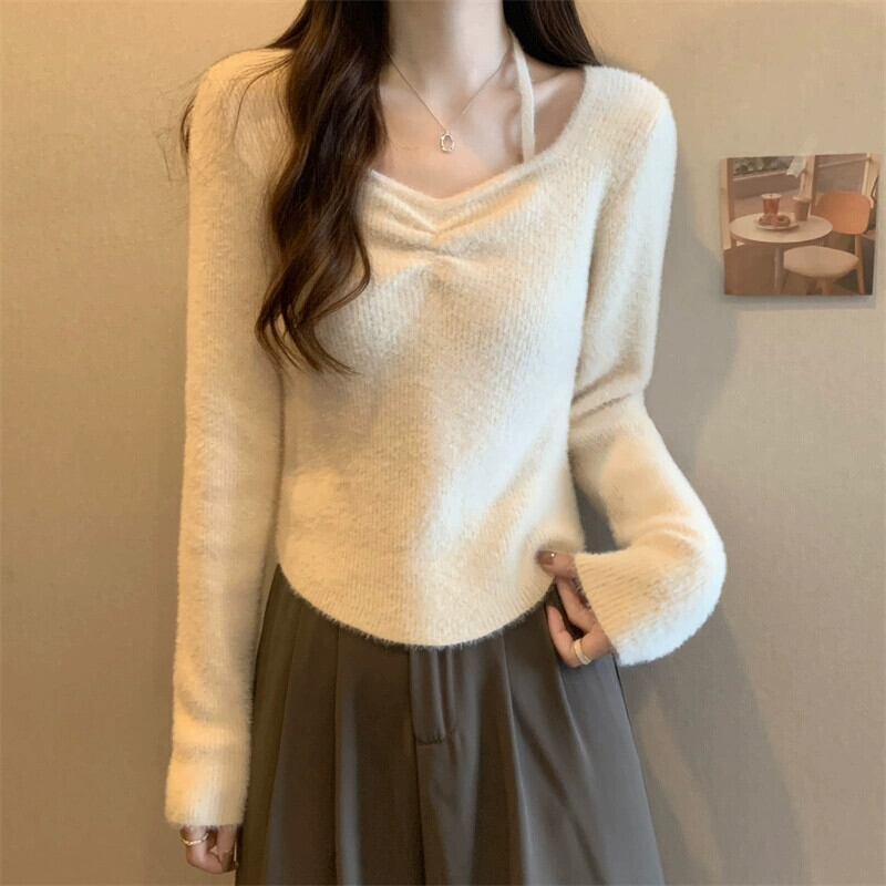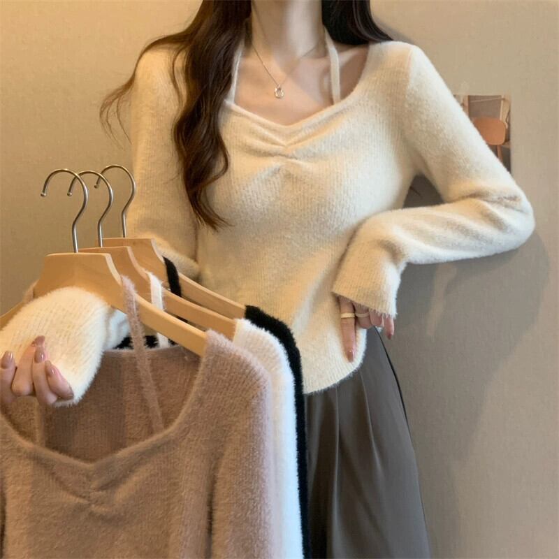 ニットボトムシャツレディース、秋模造ミンクベルベットセーター2023新しいスタイル、シック、コートとトップ付き オータム 秋物 8571684807378599
