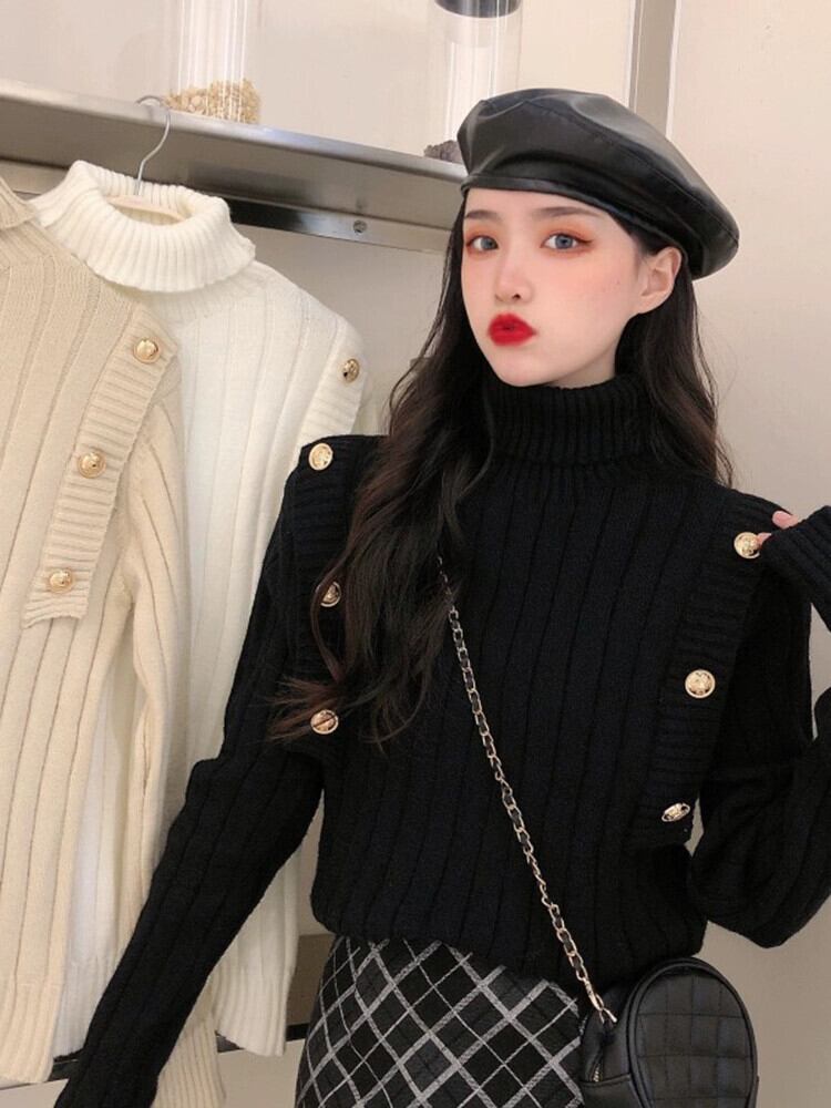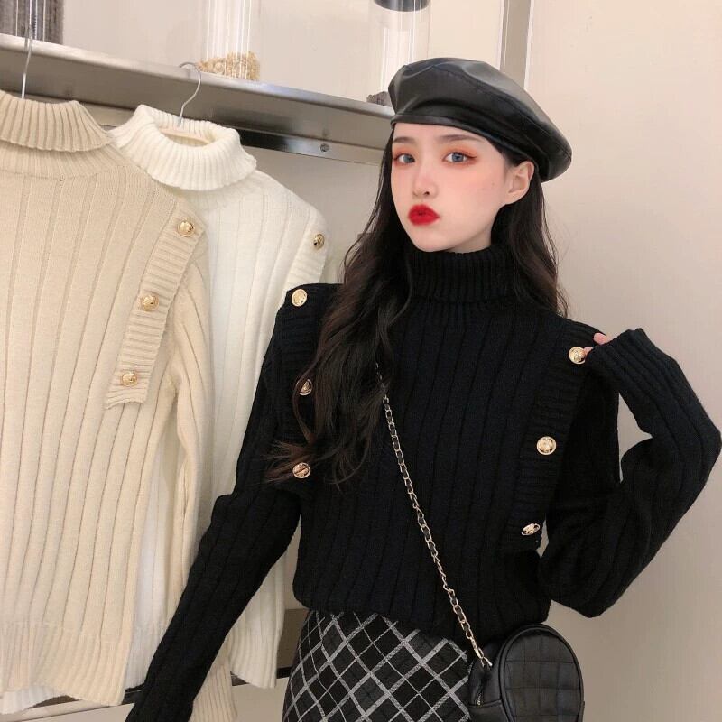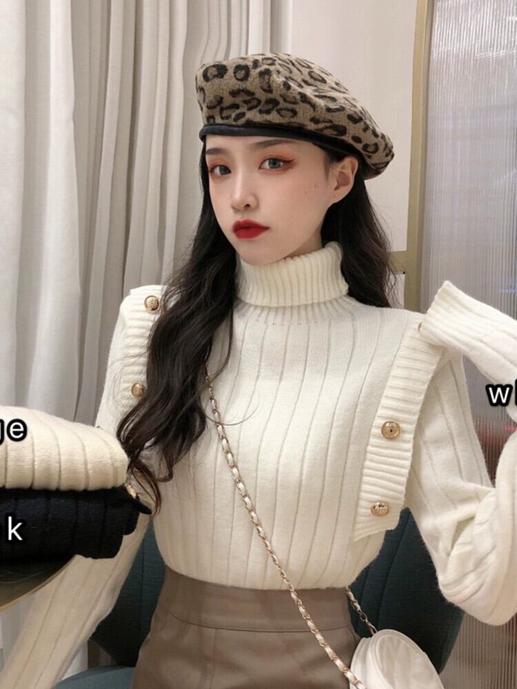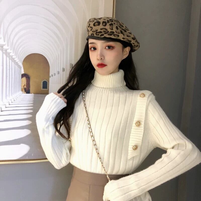 タートルネックセーター女性の秋肥厚西洋スタイル白インナー底シャツ 2023 新デザイン美しいトップ ホワイト オータム 秋物 8571634852956150