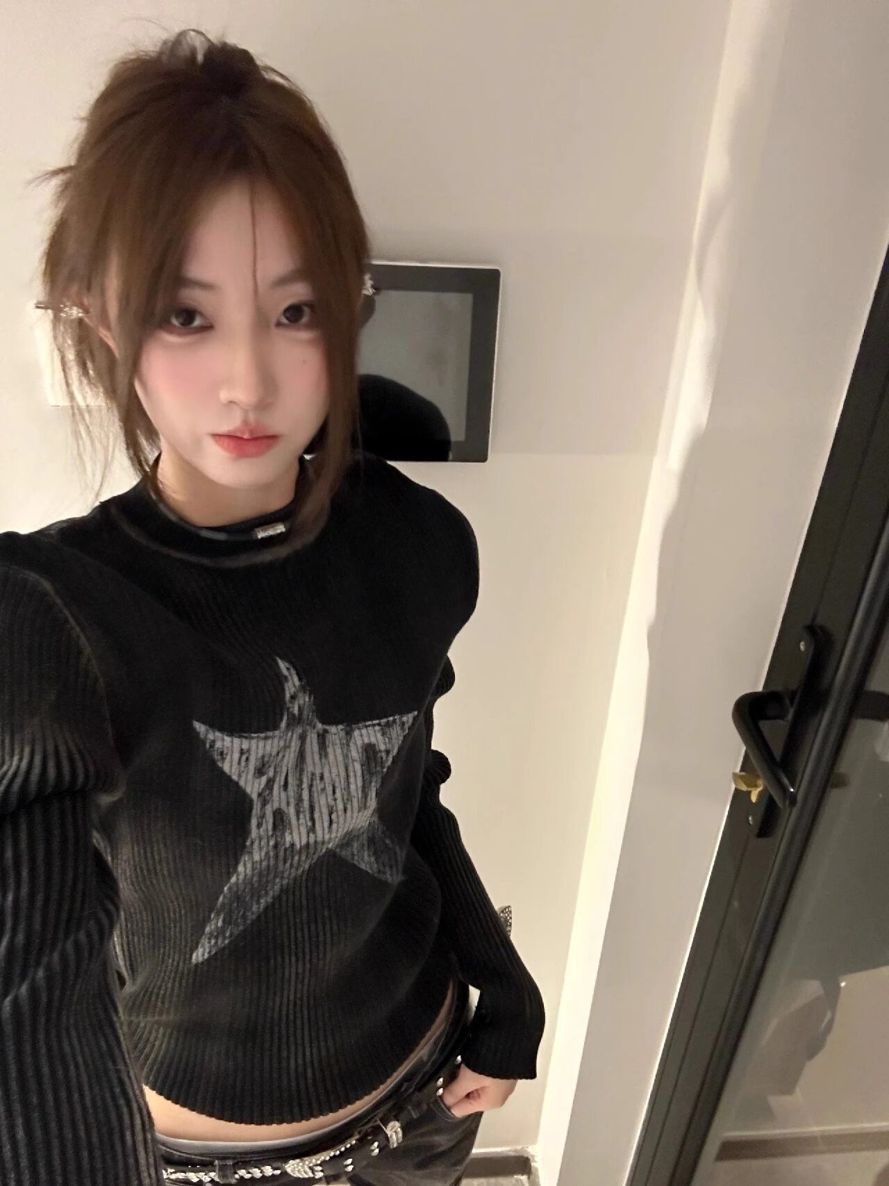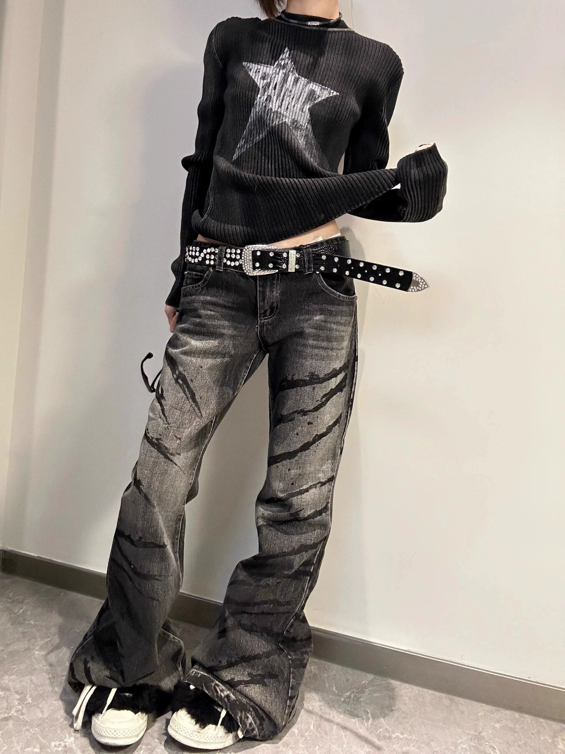 ブラックスターセーターレディース秋冬インナーレイヤリングシャツアメリカンレトロy2kデザイントップ オータム 秋物 ウィンター 冬物 8571656041826762