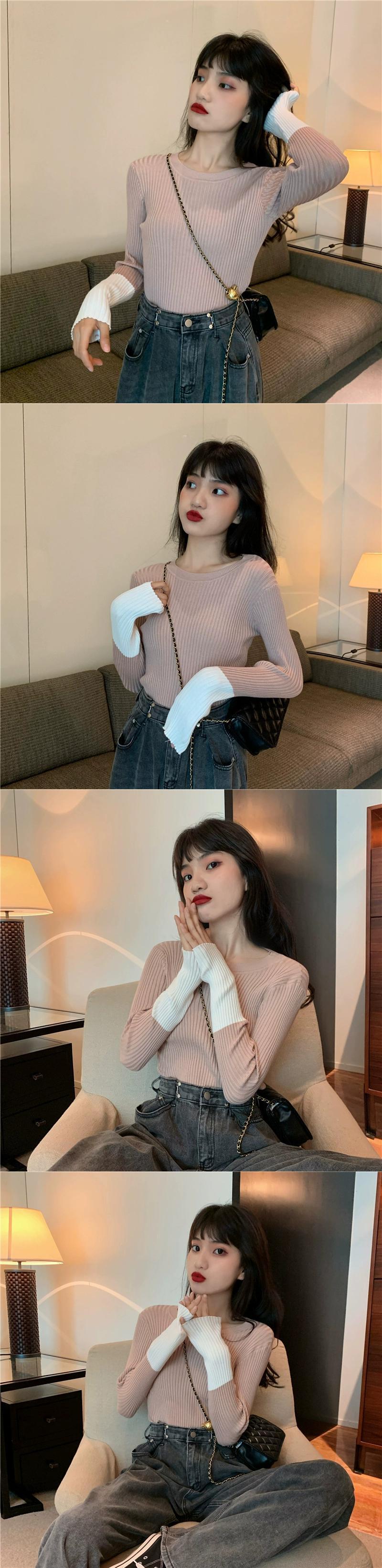 ボトリングシャツ女性の秋と冬のセーター付きコート2023新しいデザインニッチスリムでシックなニットトップ オータム 秋物 ウィンター 冬物 8571647417726153