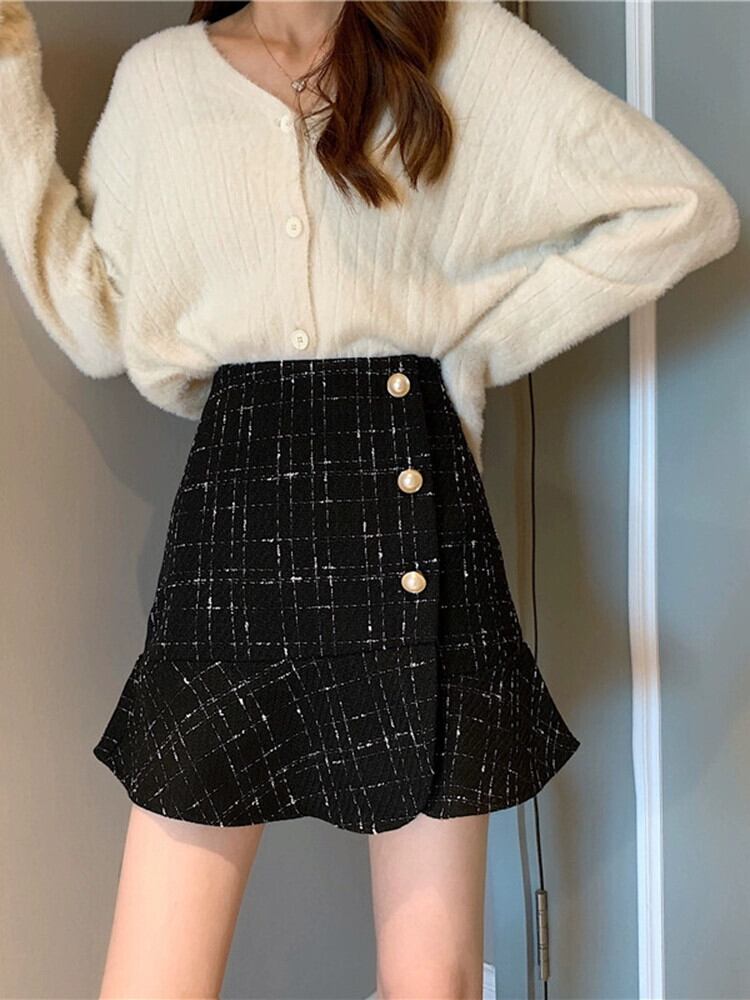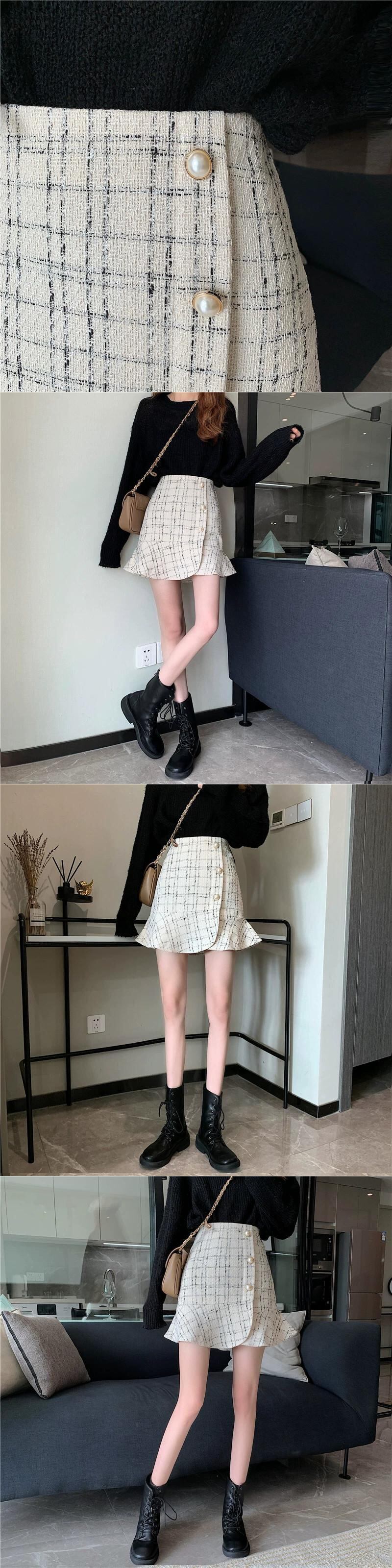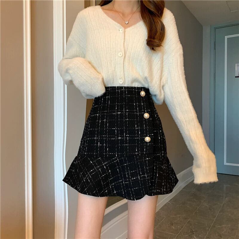 Xiaoxiangfeng スカート女性の秋のハイウエスト A ラインスカート 2023 新しいスタイル股間をカバーし、ヒップをカバーするセーターで痩身ショートスカート オータム 秋物 Aライン 8571699753811653